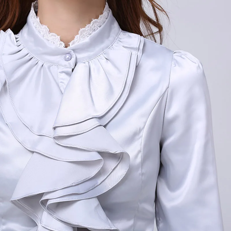 Атласное в викторианском стиле рубашка женская готическая стимпанк Лолита Блузка винтажный Edwardian Lotus Волан блуза с оборками Ренессанс средневековый Топ