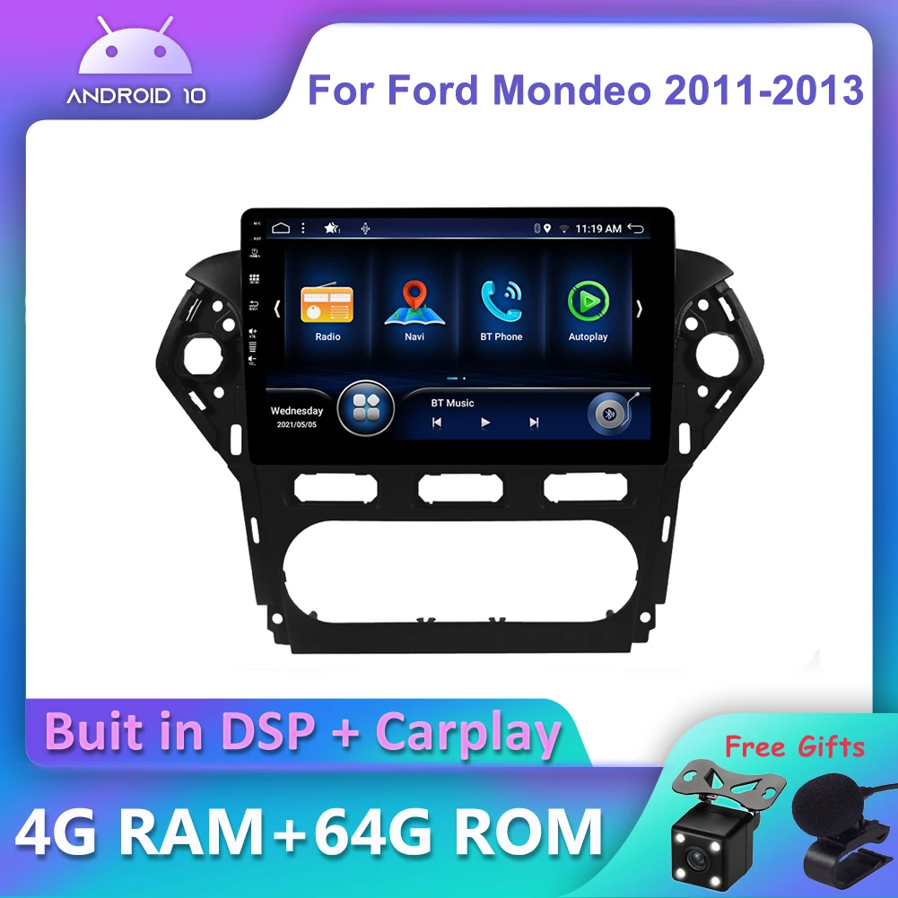 Автомобильный DVD-плеер Bosion Android 10,0 DSP CarPlay, мультимедийный плеер для Ford Mondeo 2011-2013, 2 din, GPS-навигация, DSP IPS