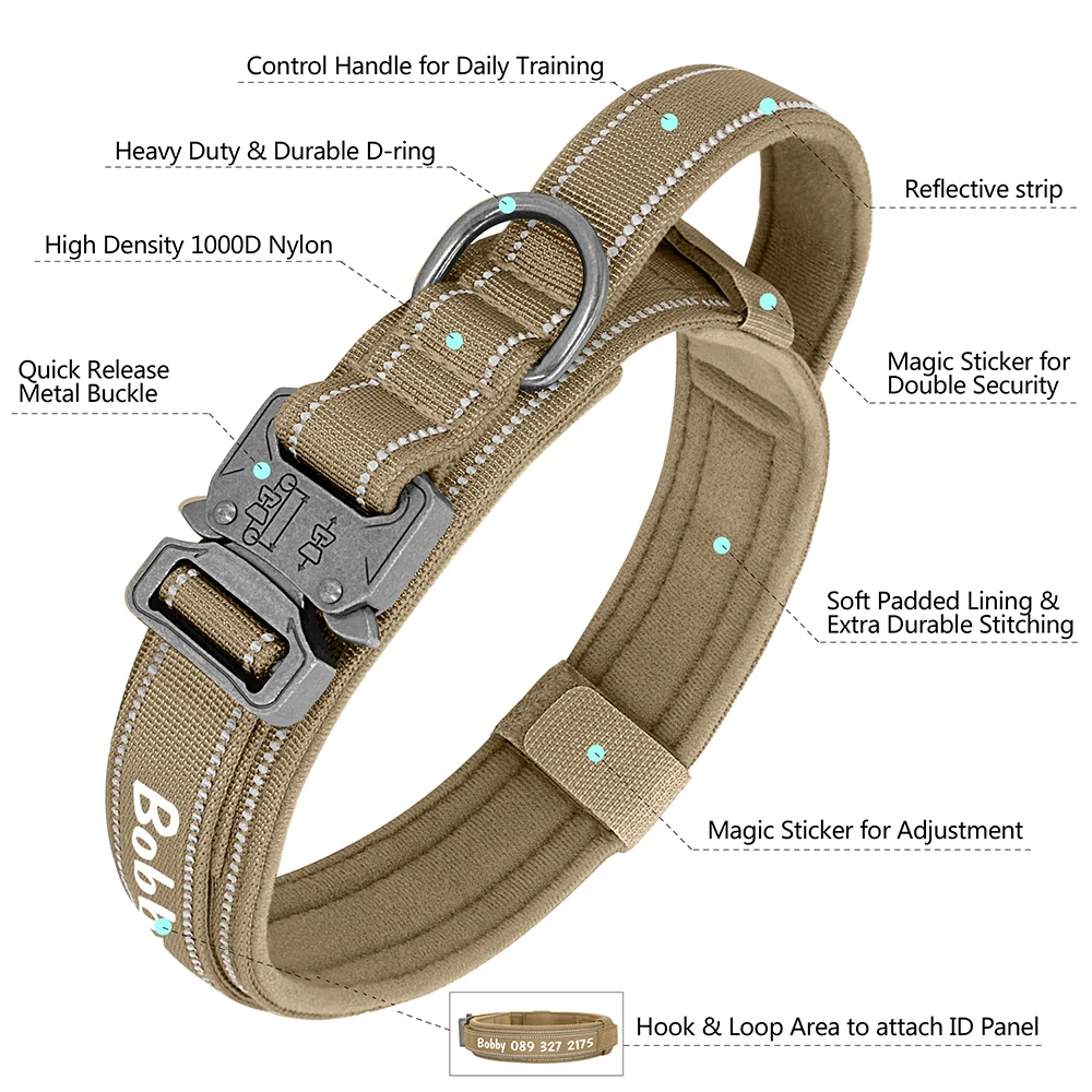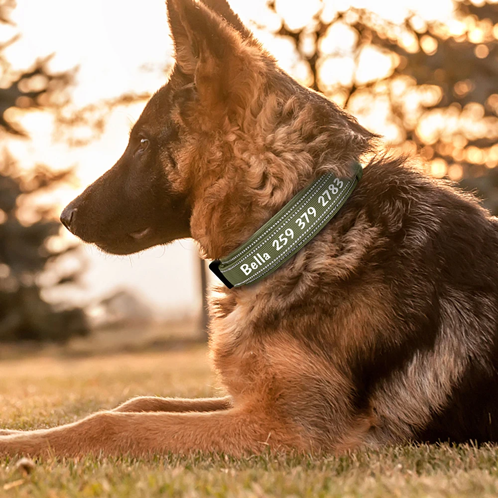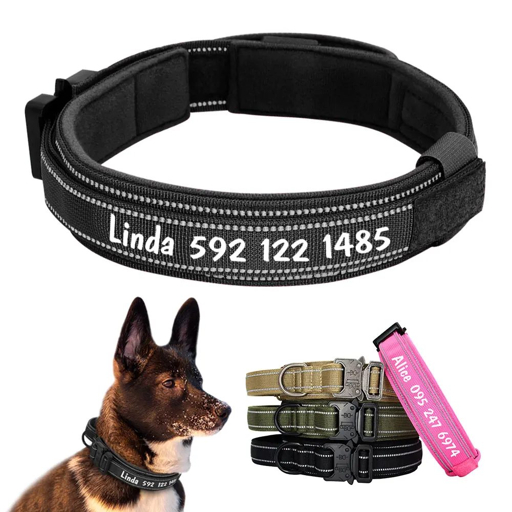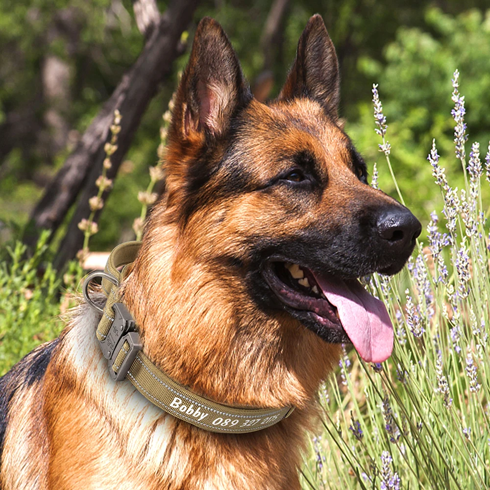 Нейлоновый военный ошейник для больших собак, тактический ошейник для домашних питомцев, персонализированный ошейник с именем собаки, номер телефона, ошейник для немецкого Шепарда