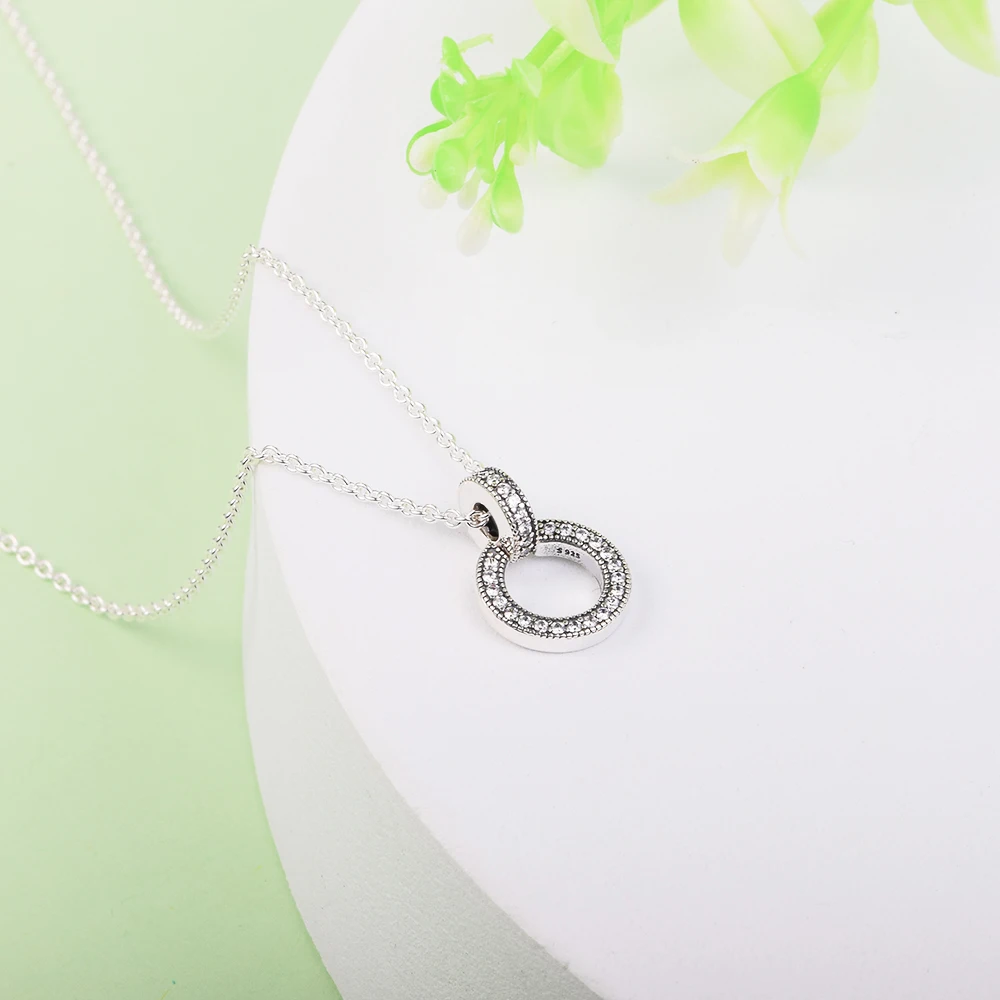 Женское ожерелье из серебра 925 пробы, с кулоном в виде двух колец,...