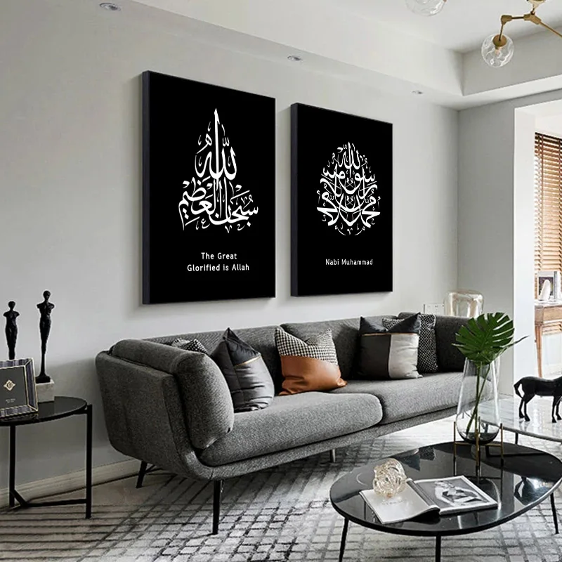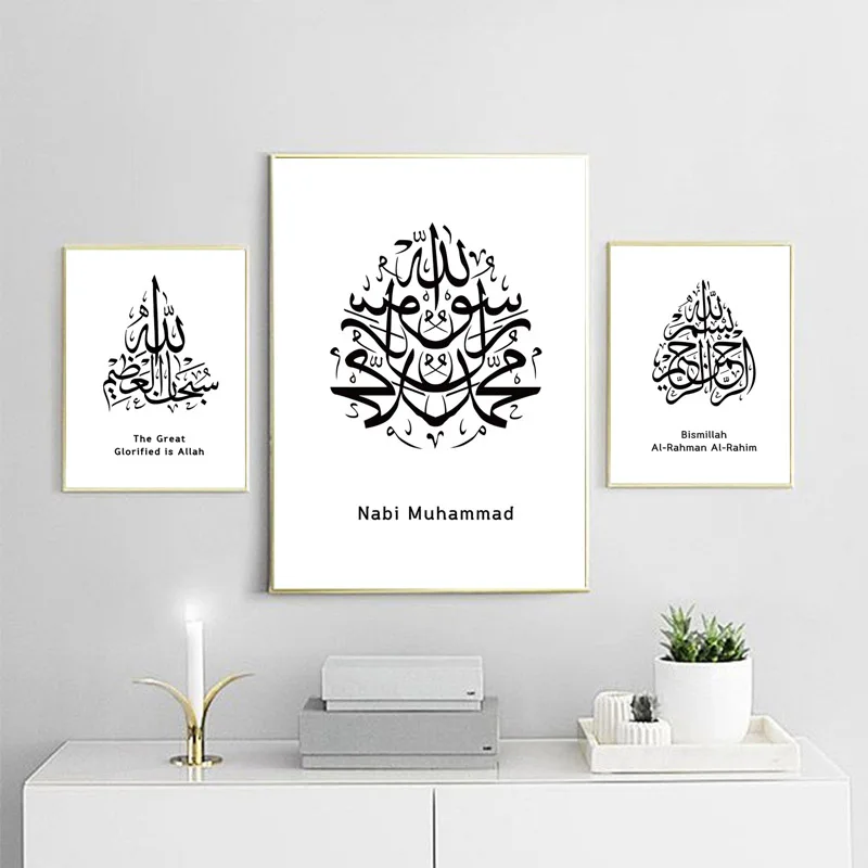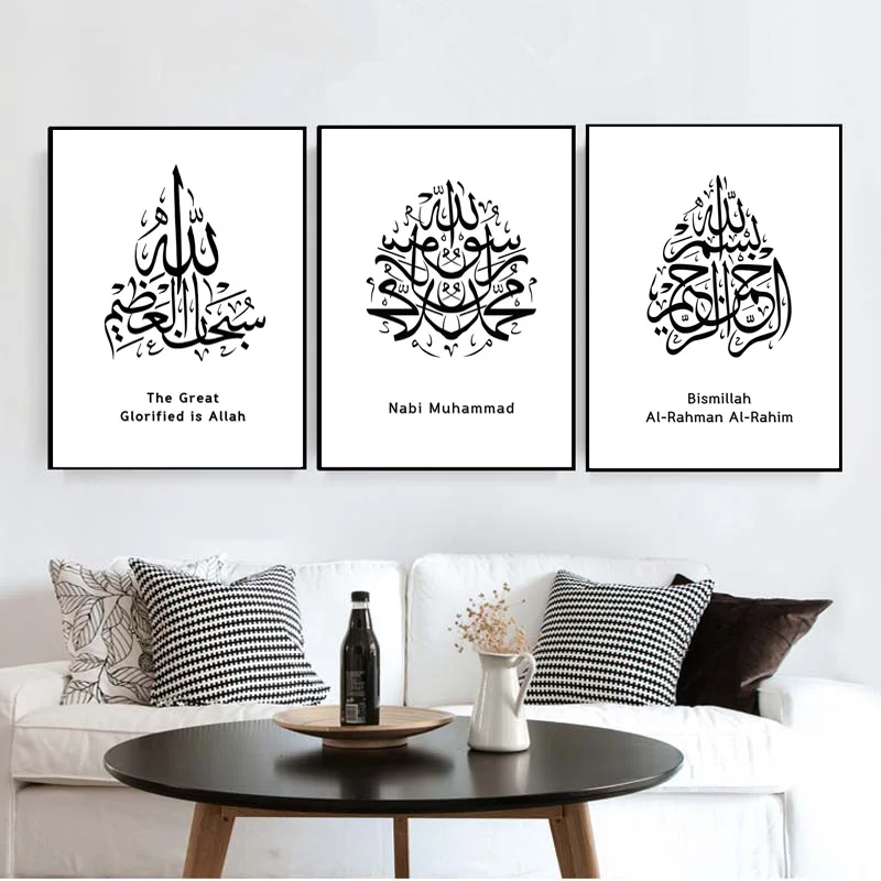 Черно-белая мусульманская настенная живопись Аллах исламский настен...