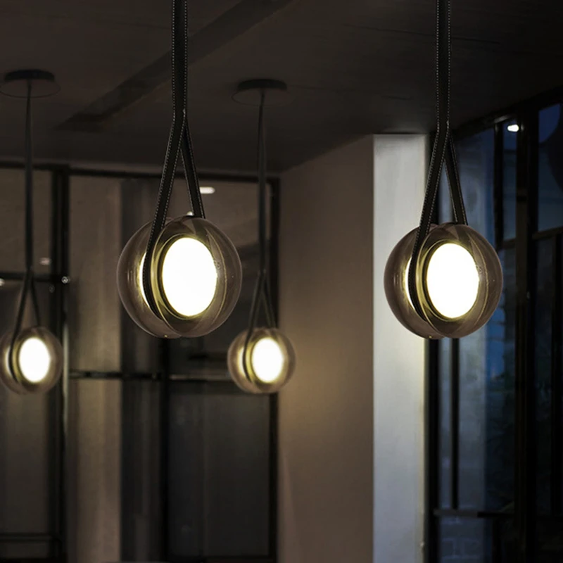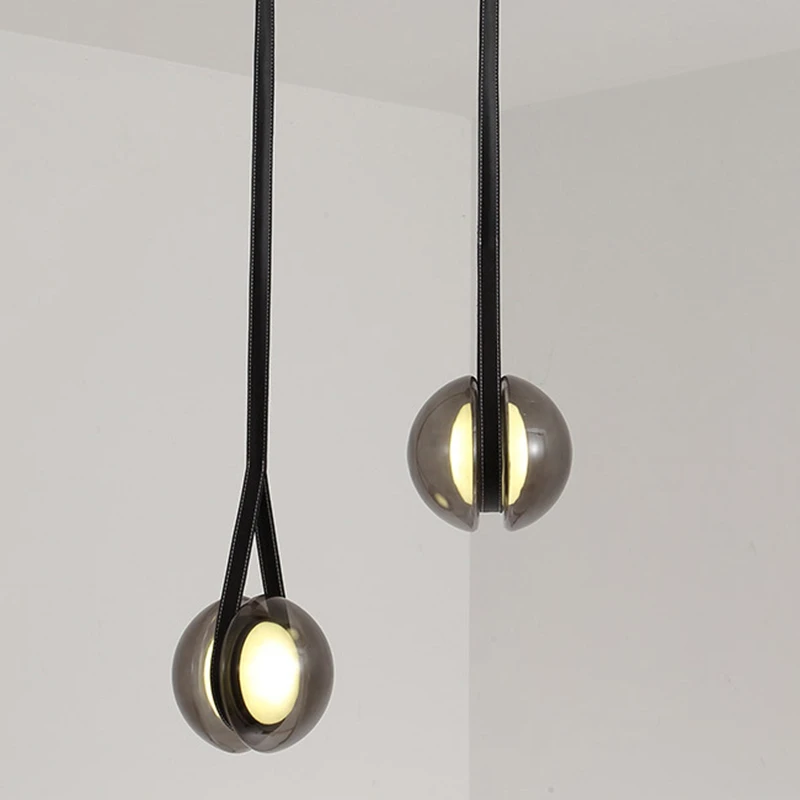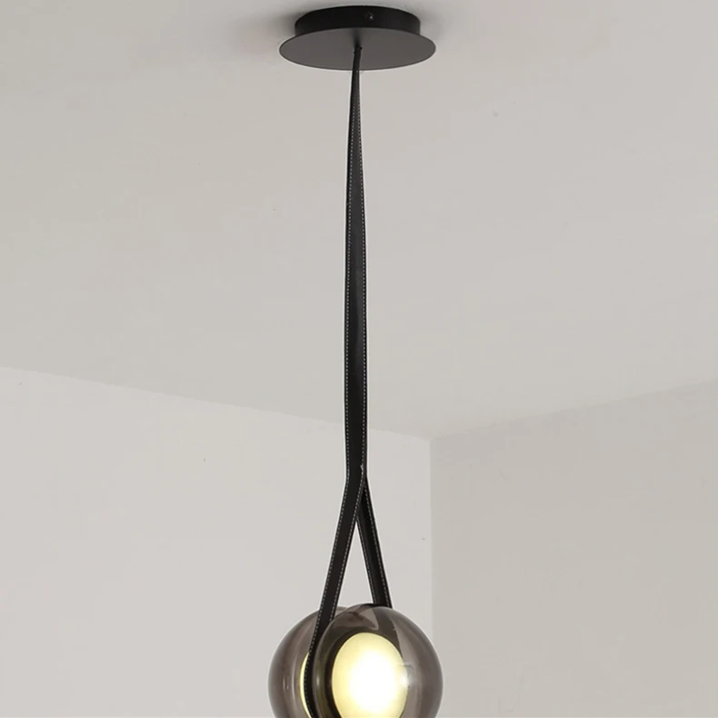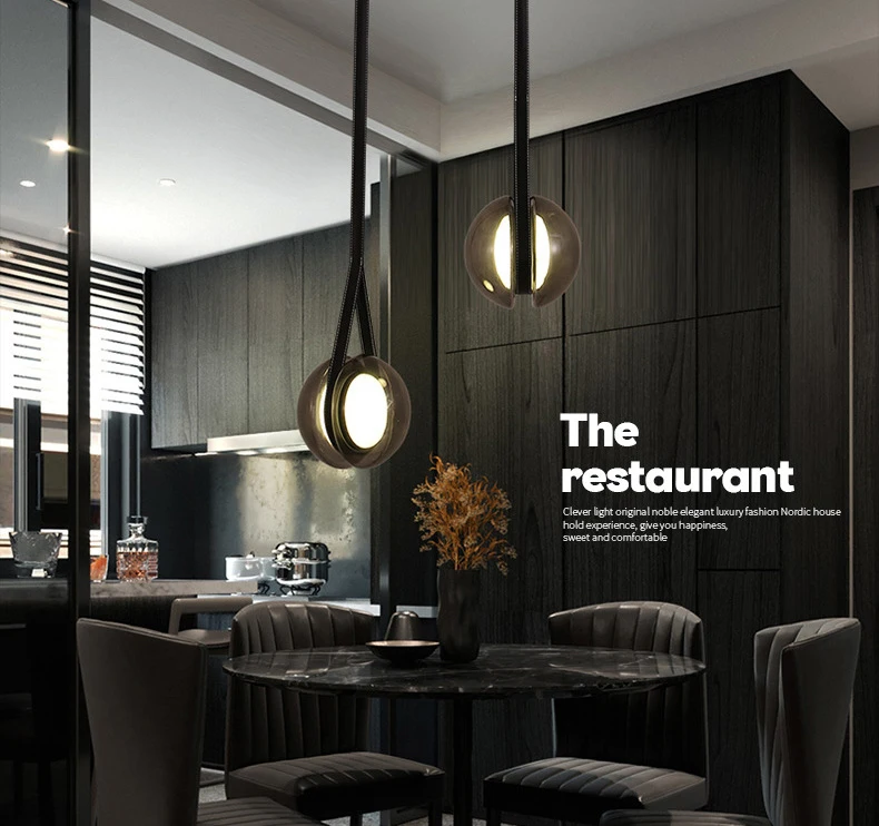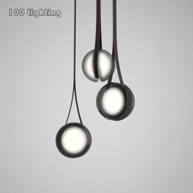 Черный кожаный светодиодный подвесной светильник бар кухня ресторан прикроватный подвесной светильник круглый стеклянный арт-деко внутренний светильник
