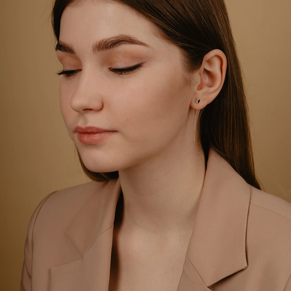 Золотые серьги протяжки с фианитами 000-331057 НАШЕ ЗОЛОТО Our gold