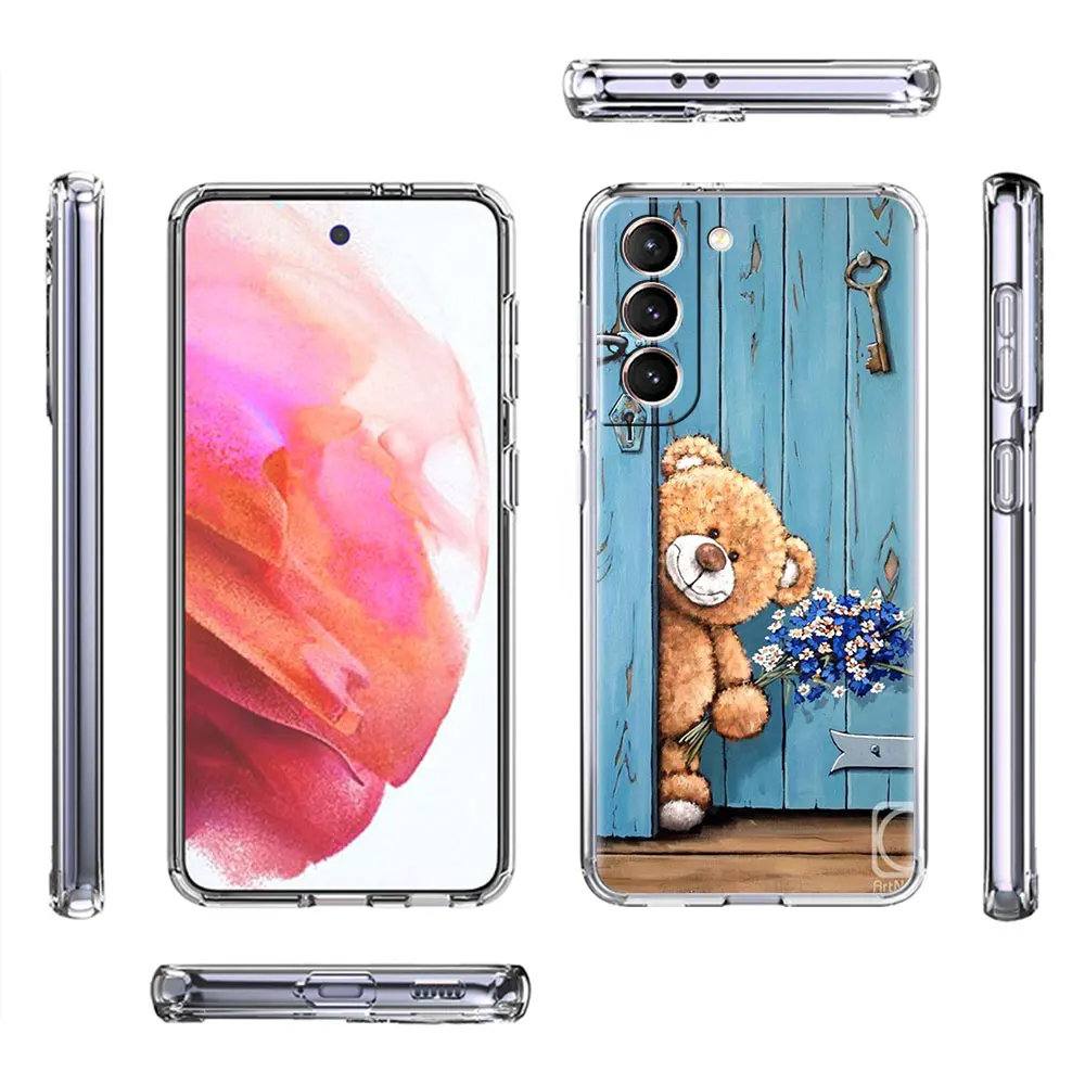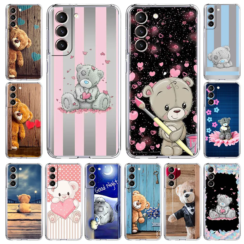 Прозрачный чехол для телефона Samsung Galaxy S21 Ultra S20 FE S10 Plus S9 S8 Note 20 10, мягкий силиконовый чехол с милым плюшевым мишкой, чехлы