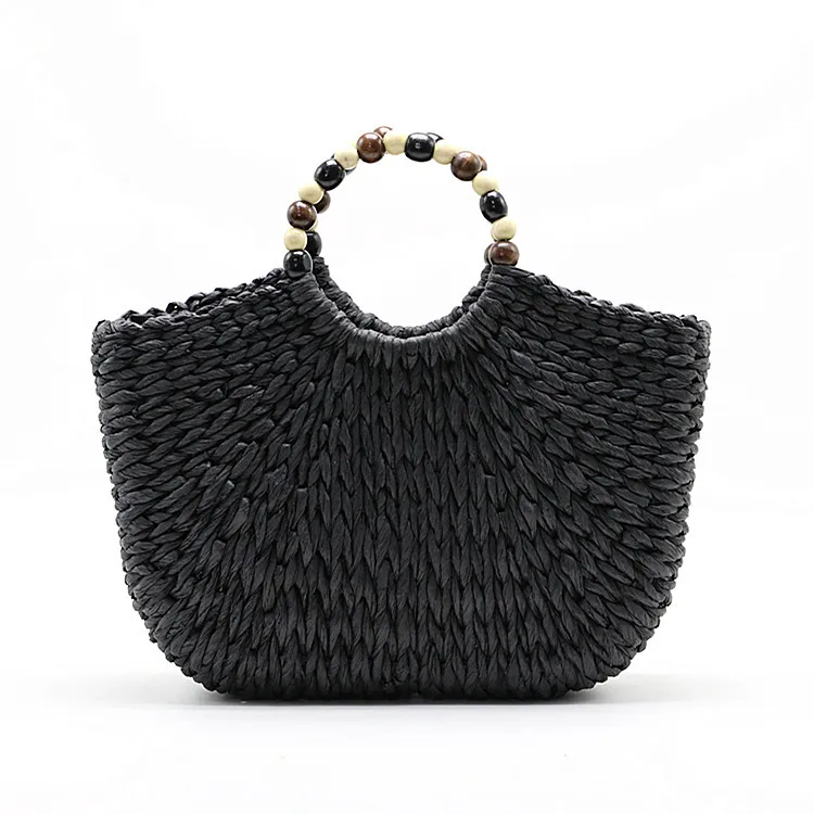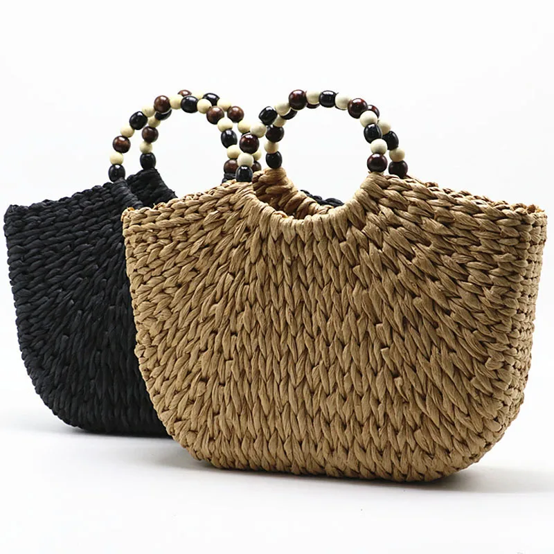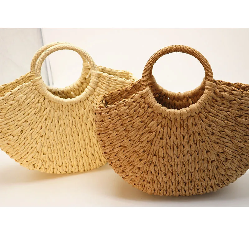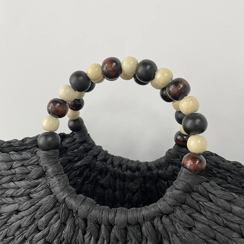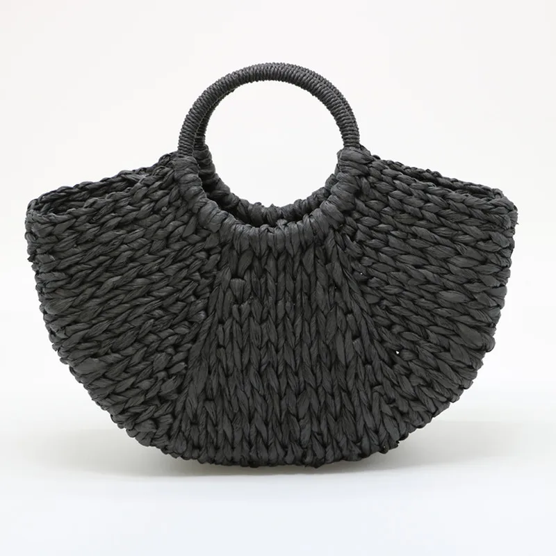 Круглая плетеная Сумка-ведро для женщин, летние вместительные Соломенные Сумочки Ручной работы верблюжьего и черного цвета, тоут