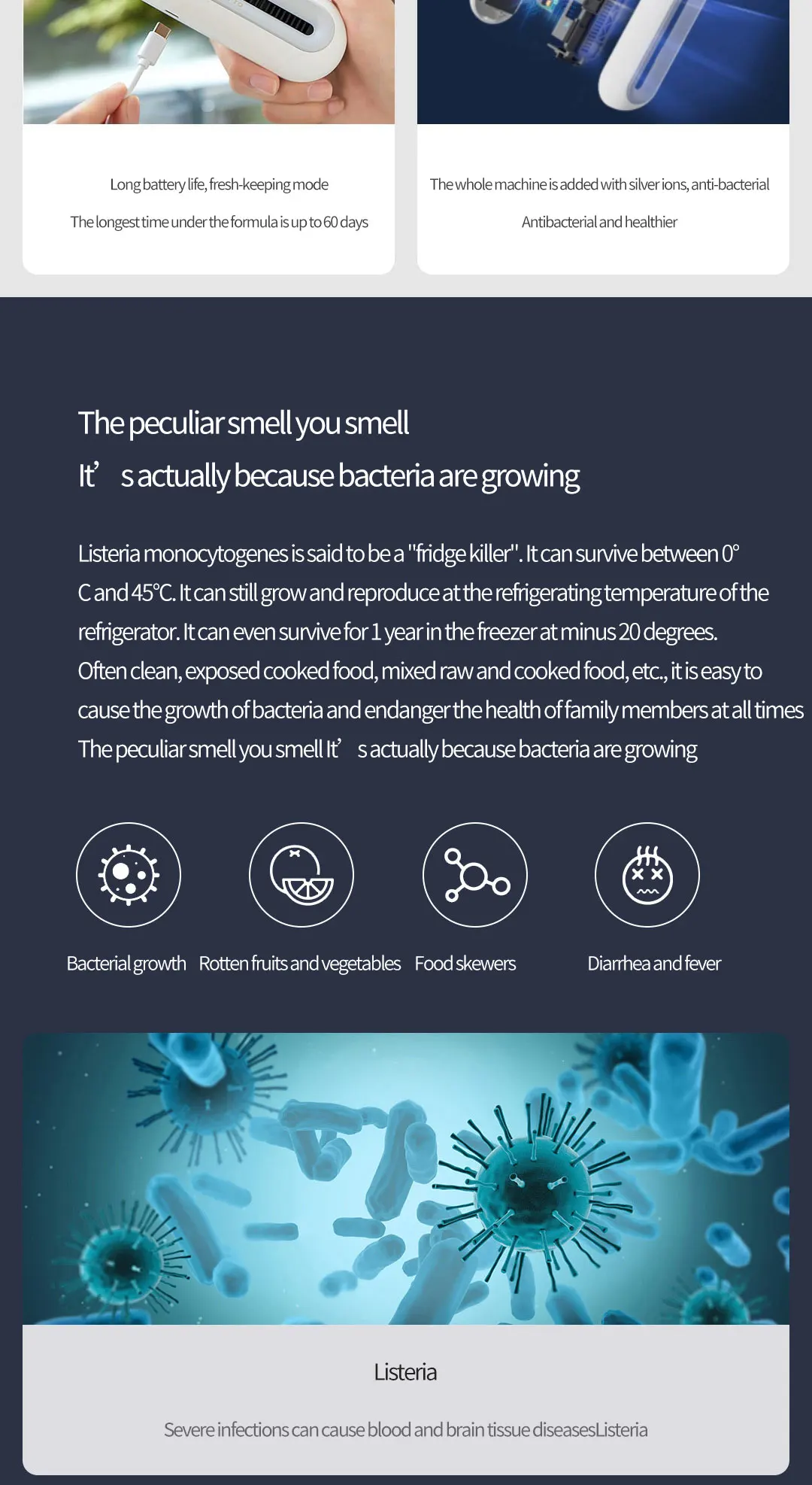 Дезодорирующая дезинфекционная машина для холодильника Eraclean, устройство для сохранения пищевых продуктов, очистки и стерилизации, зарядка через USB