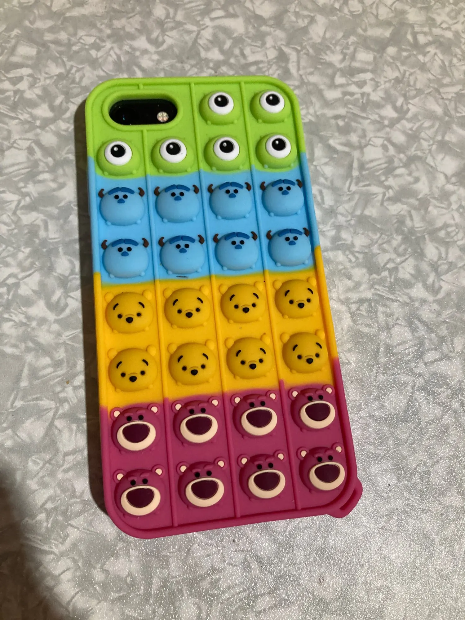 Я думал, что это будет похоже на булавки, но это не так, шарики не помещаются внутрь и не шумят булавки, когда вы нажимаете круг. Обложка очень красивая, да. И очень красочный. Но как имитация обложки Popit это не работает.