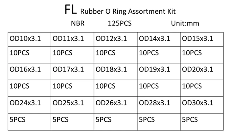 Ассортимент черных уплотнительных колец 125 шт.коркор., уплотнительные кольца с толщиной 3,1 мм, нитриловые шайбы, высокое качество, Автомобильная прокладка