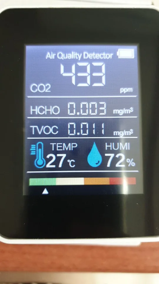 Странноватая штучка. Вроде работает, что-то даже измеряет, а вот как измеряет - вообще непонятно. По начинке видно, что стоят как минимум пара датчиков, но СО2 измеряет явно по каким-то косвенным показателям. Температуру и влажность ну примерно похоже на правду, а вот уровню углекислого газа, вредных испарений и частиц доверия вообще нет. Пару раз отключался в просто белый(светло-серый) экран и, пока не выключить на минут 5-10, не работал (такой же белый/светло-серый экран)