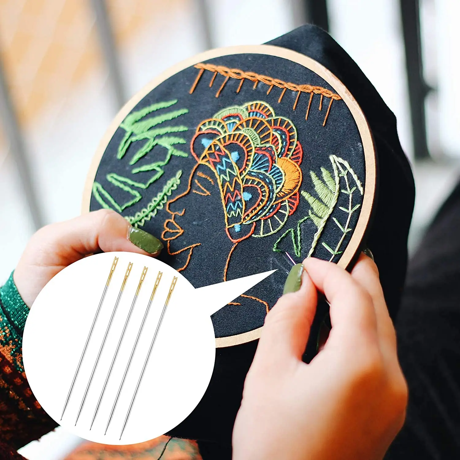 Игла для заправки нитей для пожилых людей, 12 шт. + швейное кольцо для шитья домашней одежды, иглы для бисероплетения, игла из нержавеющей стали с большим отверстием