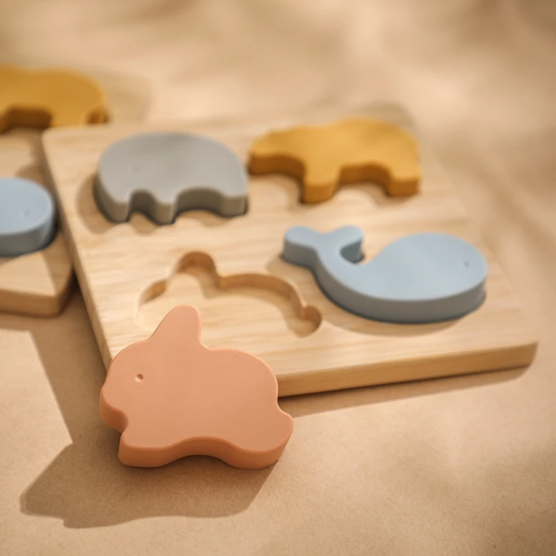 Детские деревянные головоломки животные формы силиконовые прорезыватель BPA бесплатно Монтессори развитие интеллекта игры Безопасные игрушки для малышей Подарки