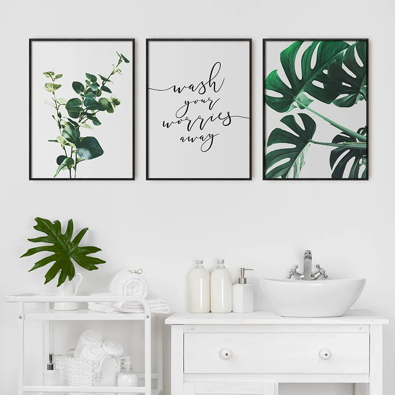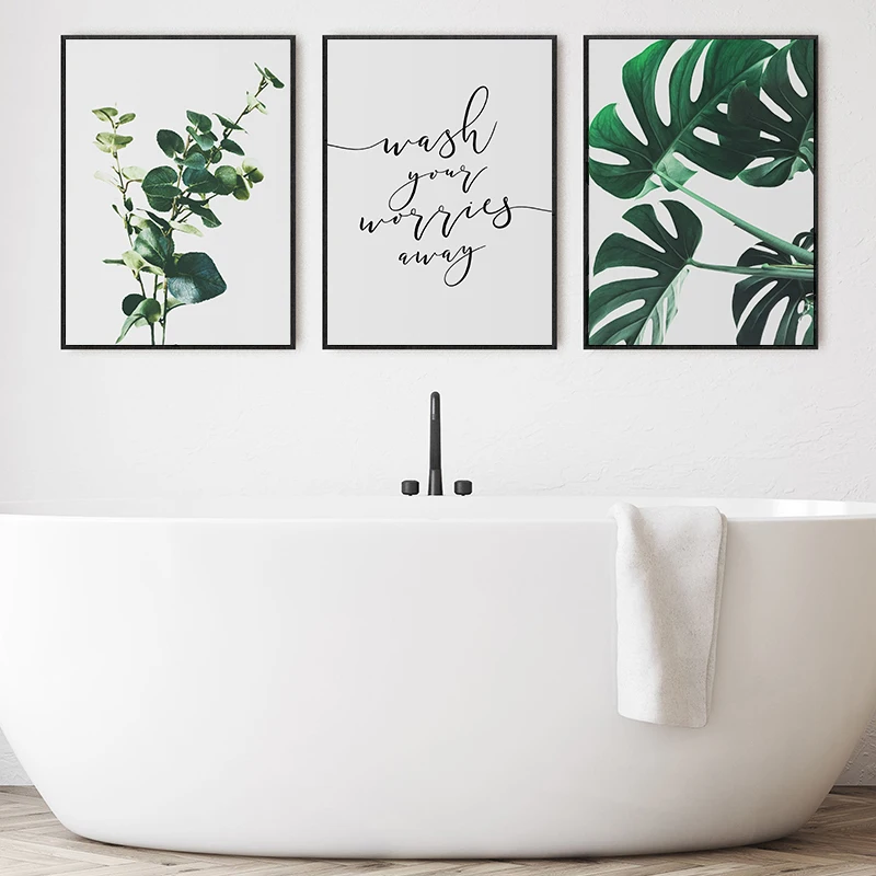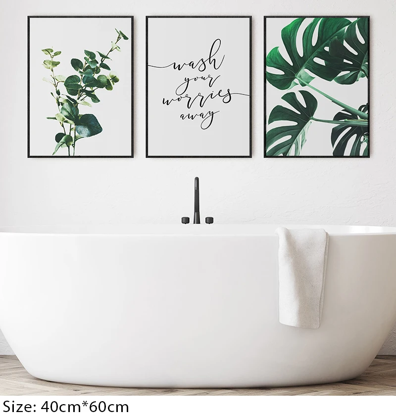 Настенная картина с зелеными листьями, простой постер на холсте в скандинавском стиле, Современное украшение для ванной комнаты