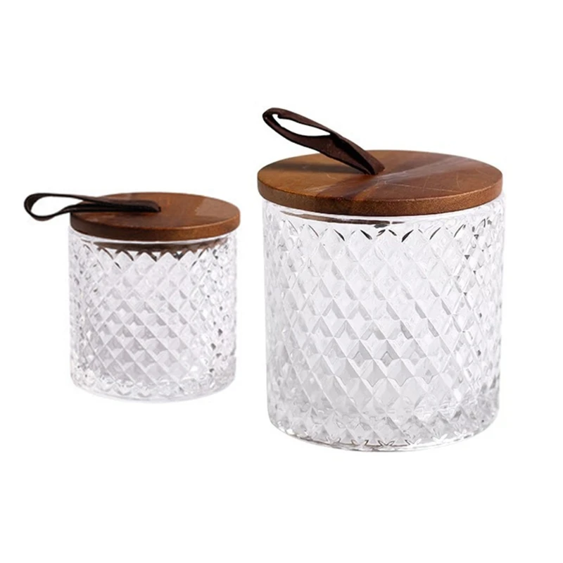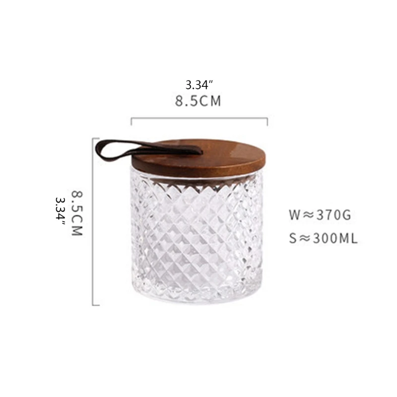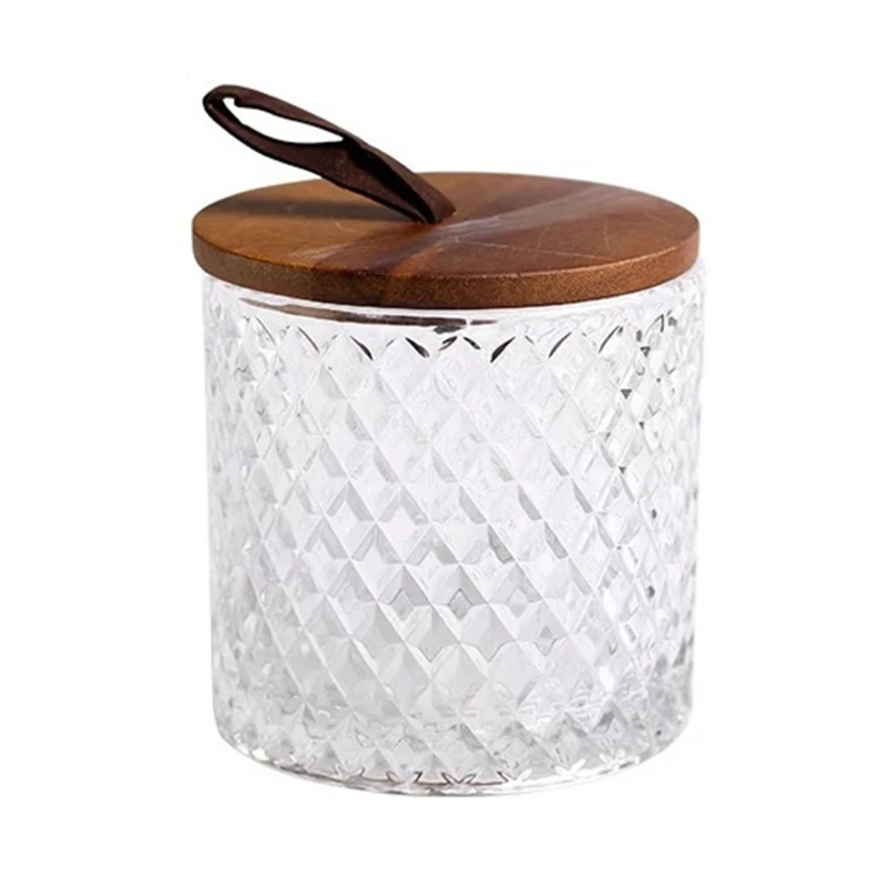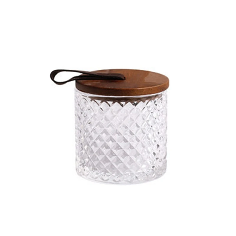 Современная стеклянная банка с алмазным узором и деревянной ручкой с крышкой, бытовой резервуар для хранения кофе, пряность для чая, прозрачная бутылка для еды N0PA