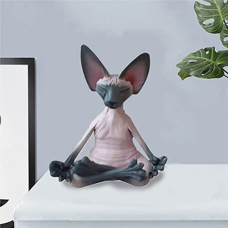 -Капризный Сфинкс Кот в позе йоги. Мило до крайности, когда вы медитируете с ним рядом, вы тоже будете очень счастливы. Идеальный подарок для любителей кошек или йоги.