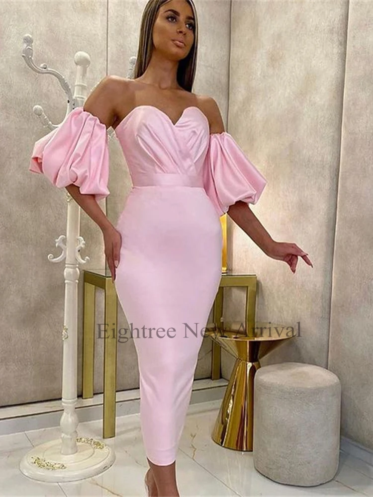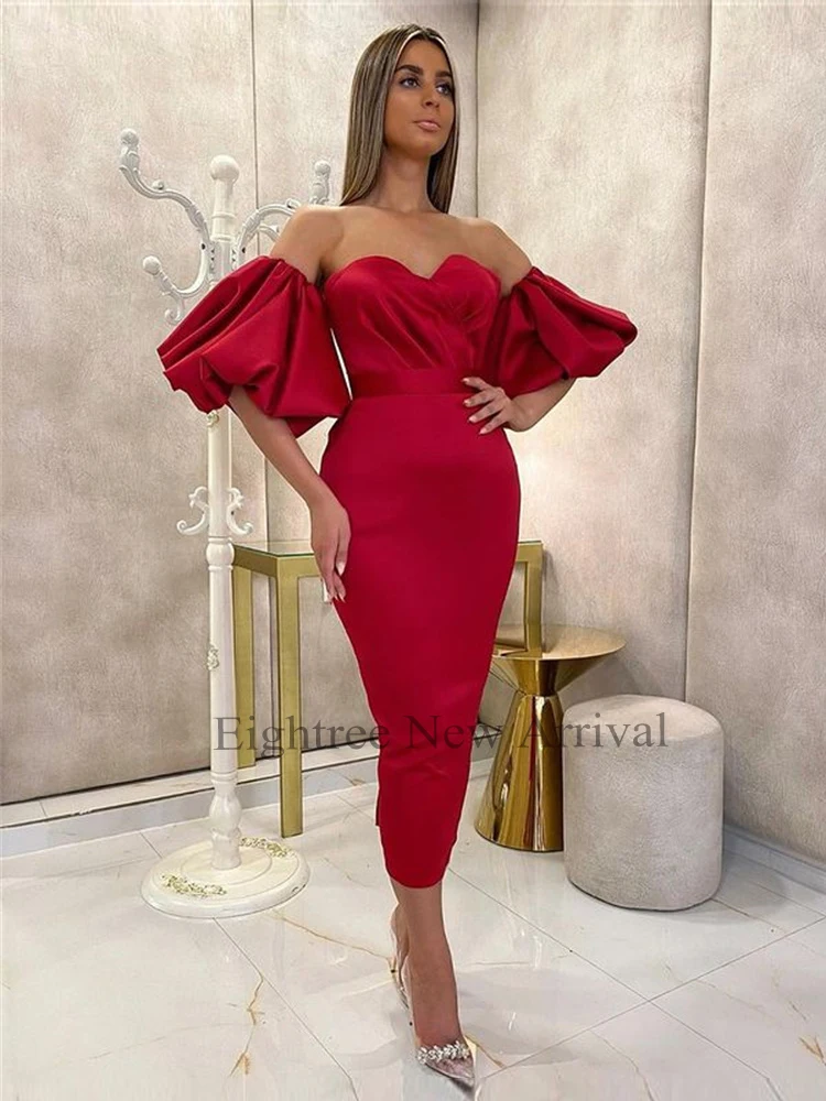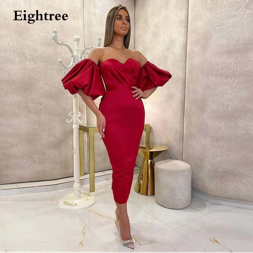 Красное Атласное короткое вечернее платье Eight Tree 2021, Пляжное вечернее платье с короткими рукавами-фонариками для выпускного вечера