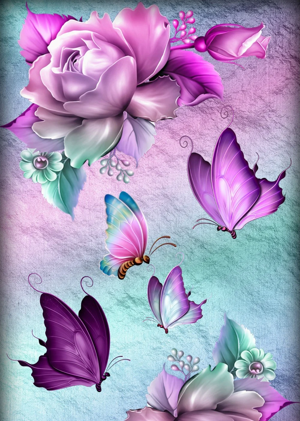 Алмазная картина 5d "сделай сам", бабочки и цветы, вышивка крестико...
