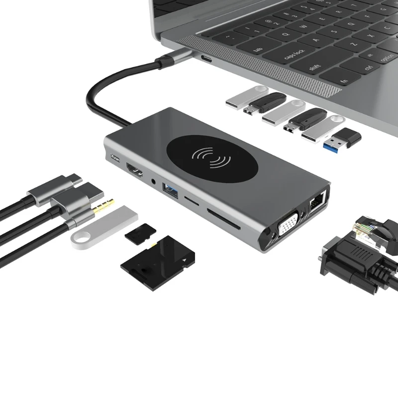 USB-концентратор COOLWOLF 15 в 1, USB C, HDMI,VGA,RJ45, 100WPD,SDTF