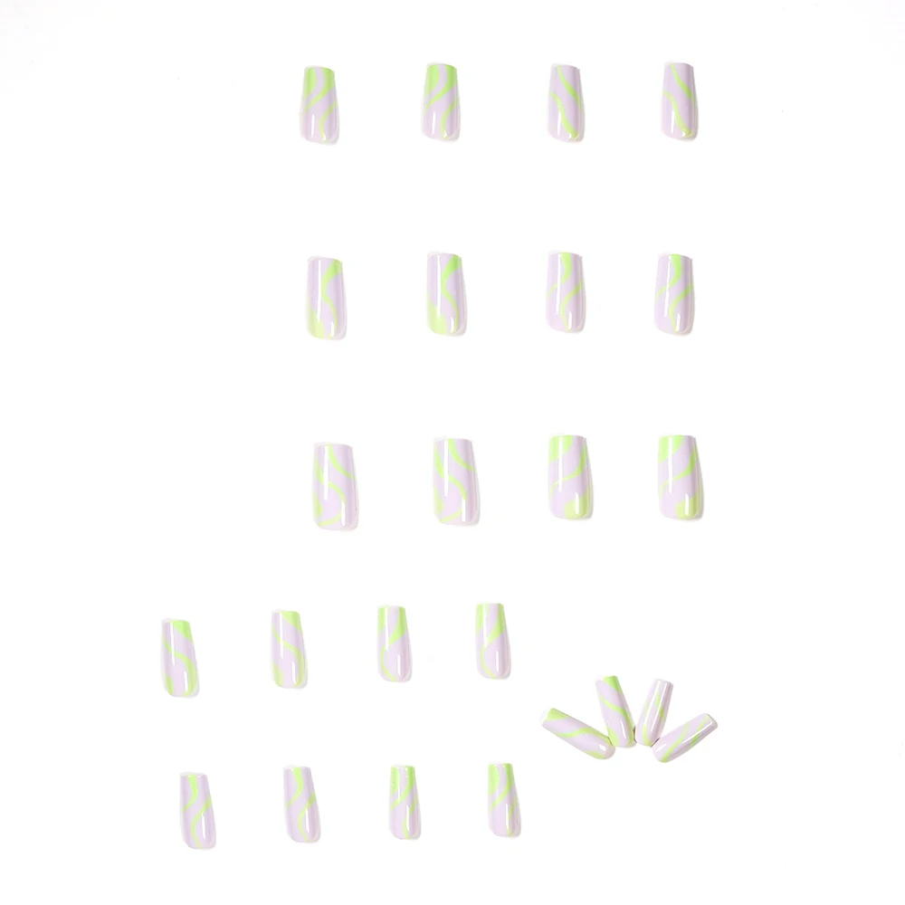 Накладные ногти с синими волнистыми квадратными головками, 24 шт., съемные накладные ногти балерины, накладные ногти с полным покрытием, накладные ногти с клеем для прессования