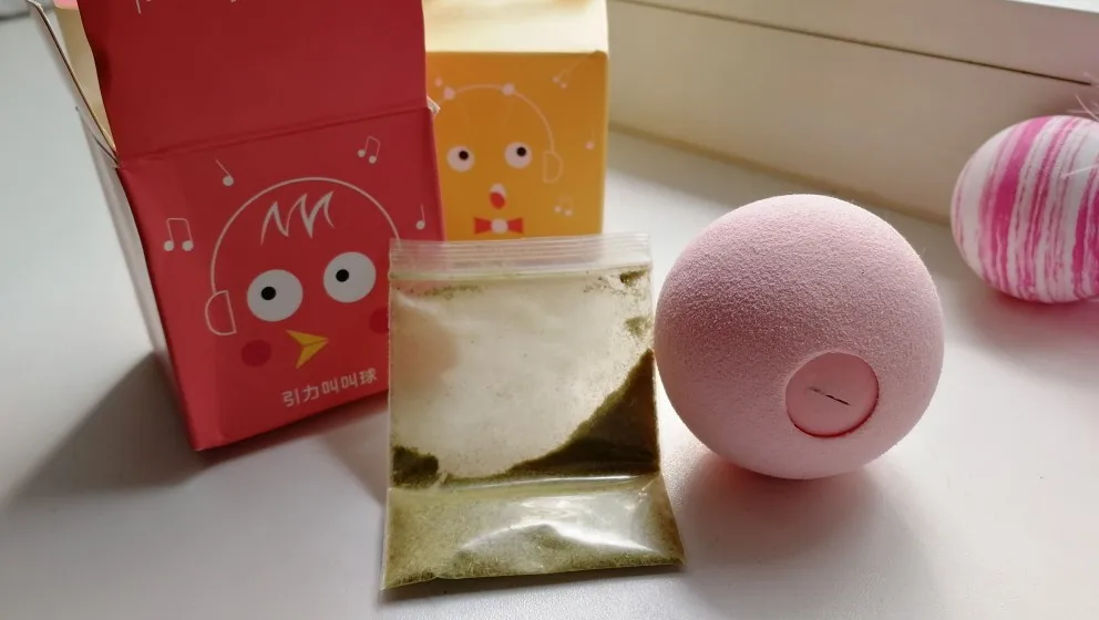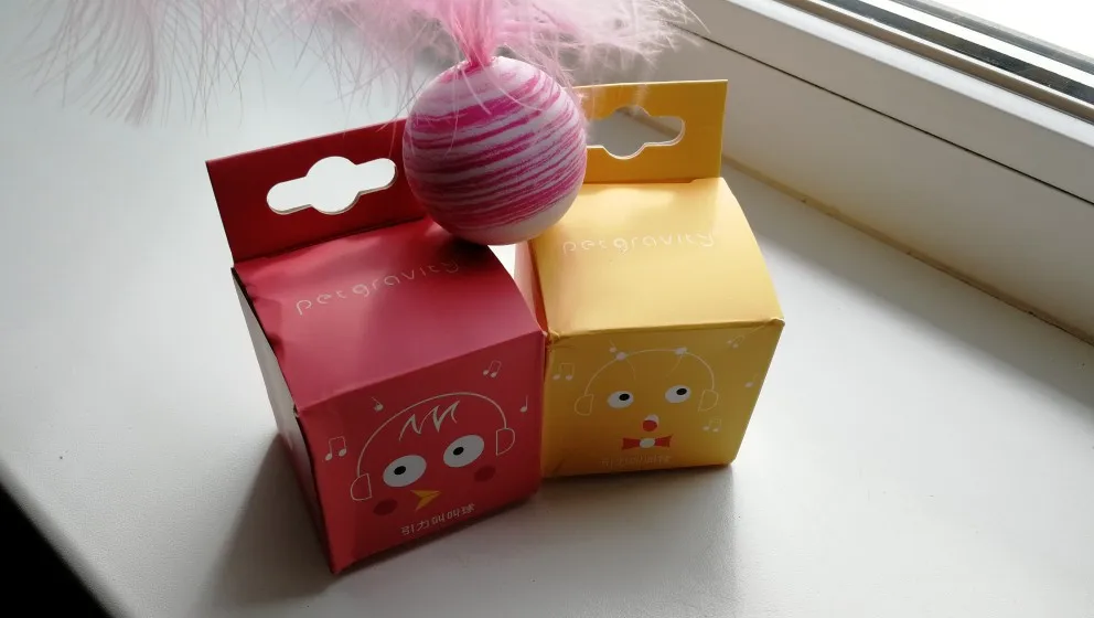 Шарик супер. При значимом прикосновении издаёт звук пения птицы, не громко. В коробке пакет с толченой травой, вероятно кошачья мята. Кот заинтересовался сразу, стал играть, он доволен! Спасибо продавцу! Доставка в почтовое отделение в назначенный срок.