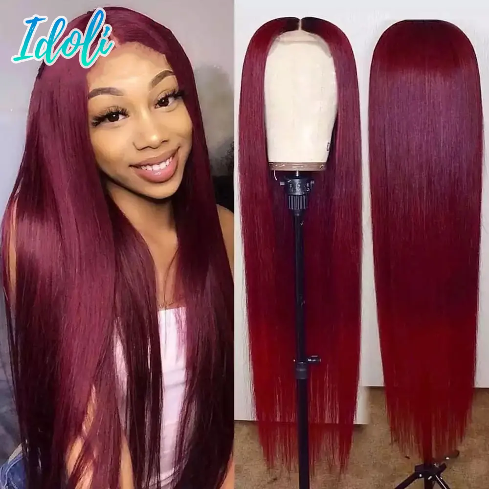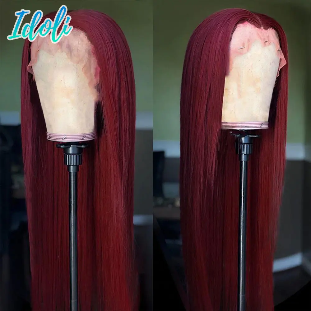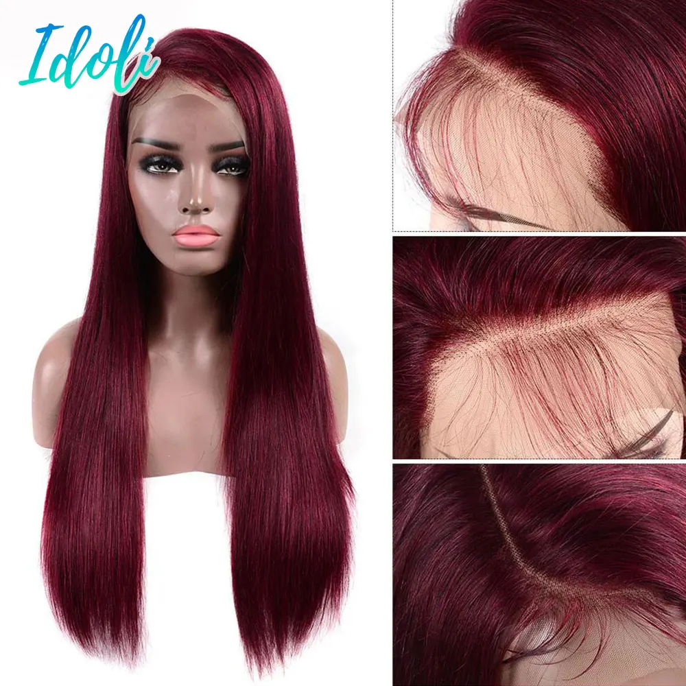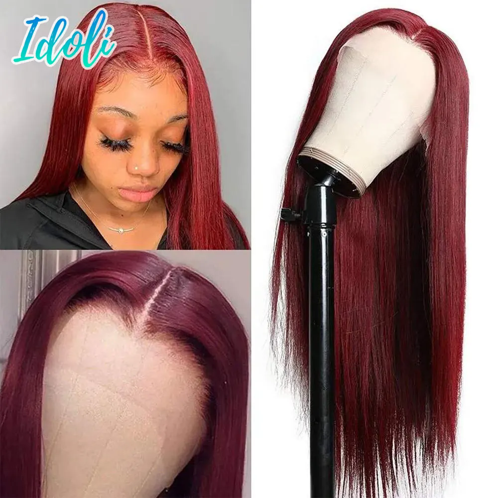 Бордовый прямой парик из натуральных волос 99J для чернокожих женщин, 13x4x1, бразильский, с натуральной линией волос