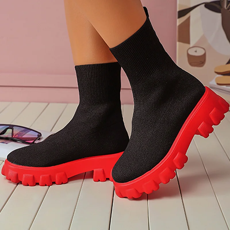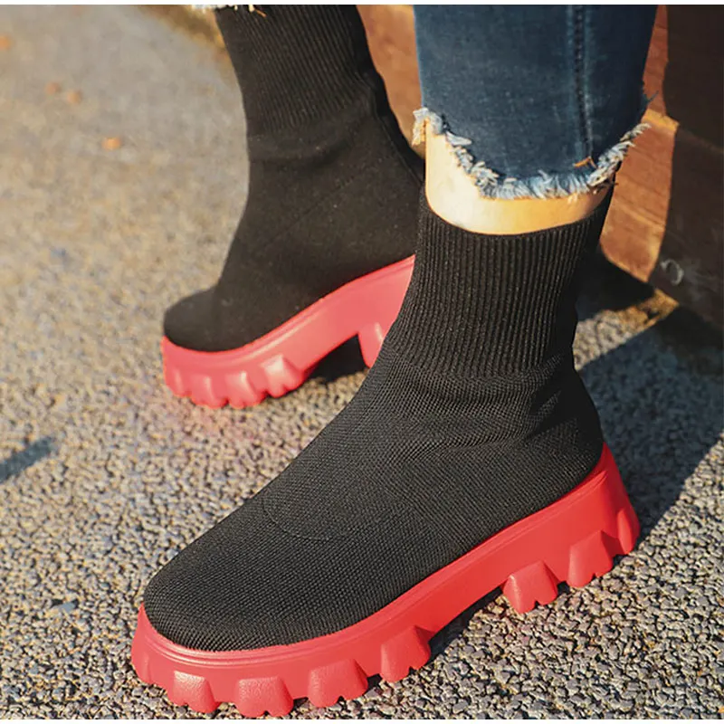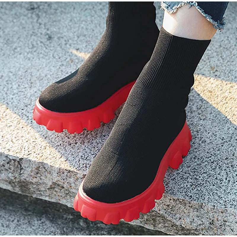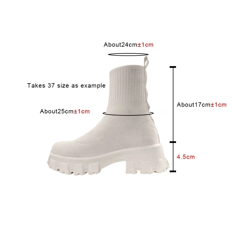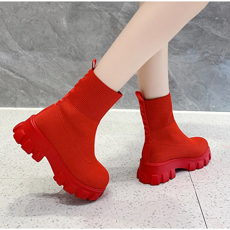 Женские осенние ботинки-носки, женская повседневная обувь до середины икры из стрейчевой ткани на платформе, вязаные короткие сапоги, женские ботинки больших размеров, новинка 2021