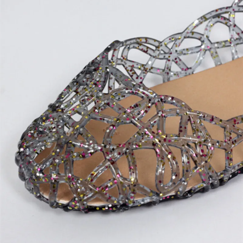 Сандалии-желе женские с перфорацией, сетчатые туфли на плоской подошве, с кристаллами, модная дышащая удобная обувь, модные шлепанцы
