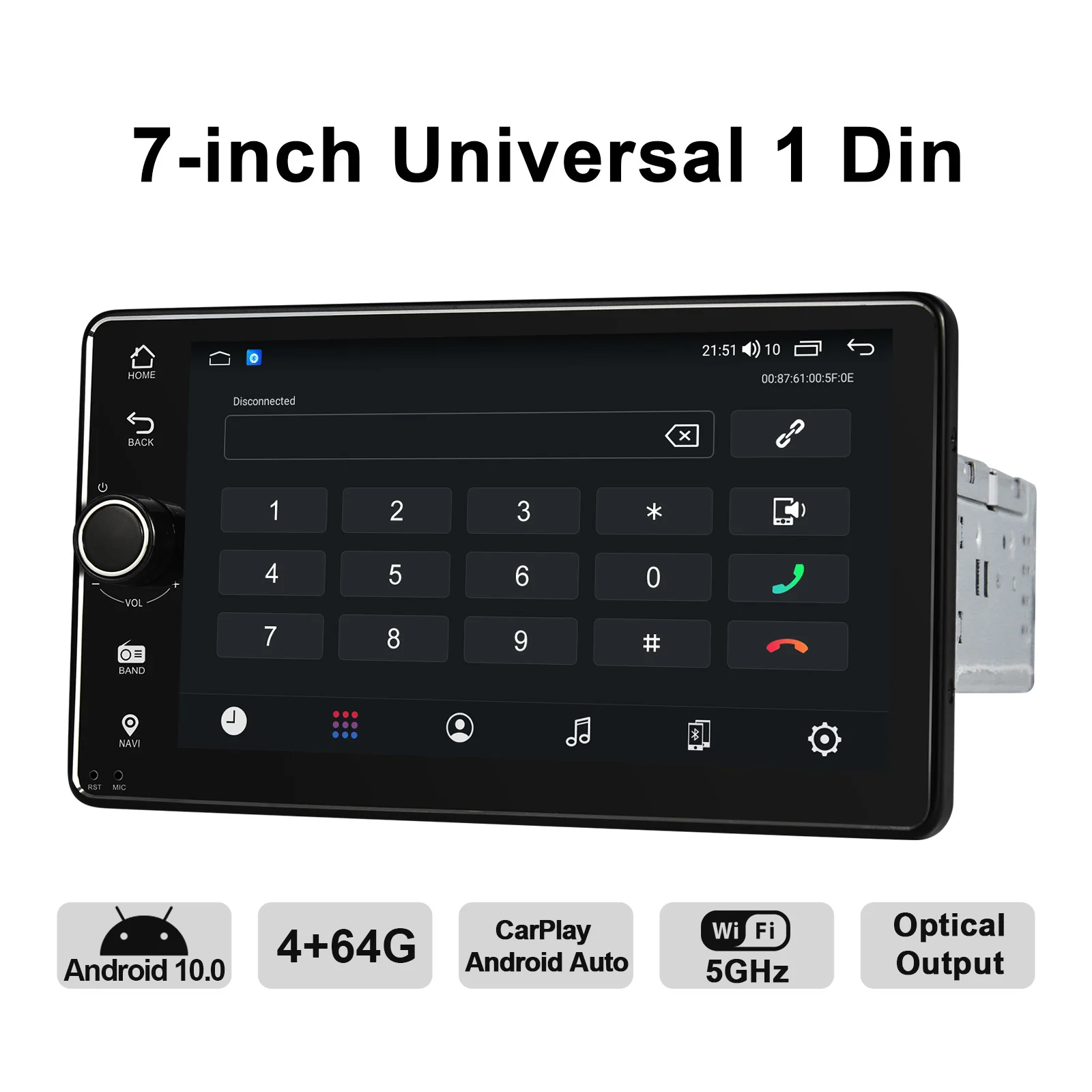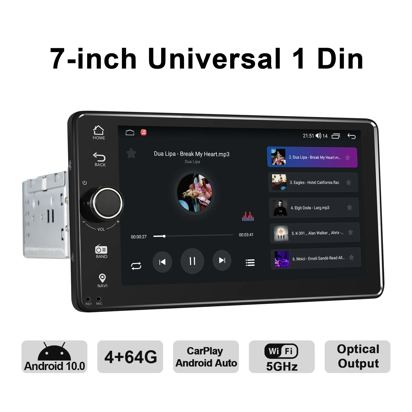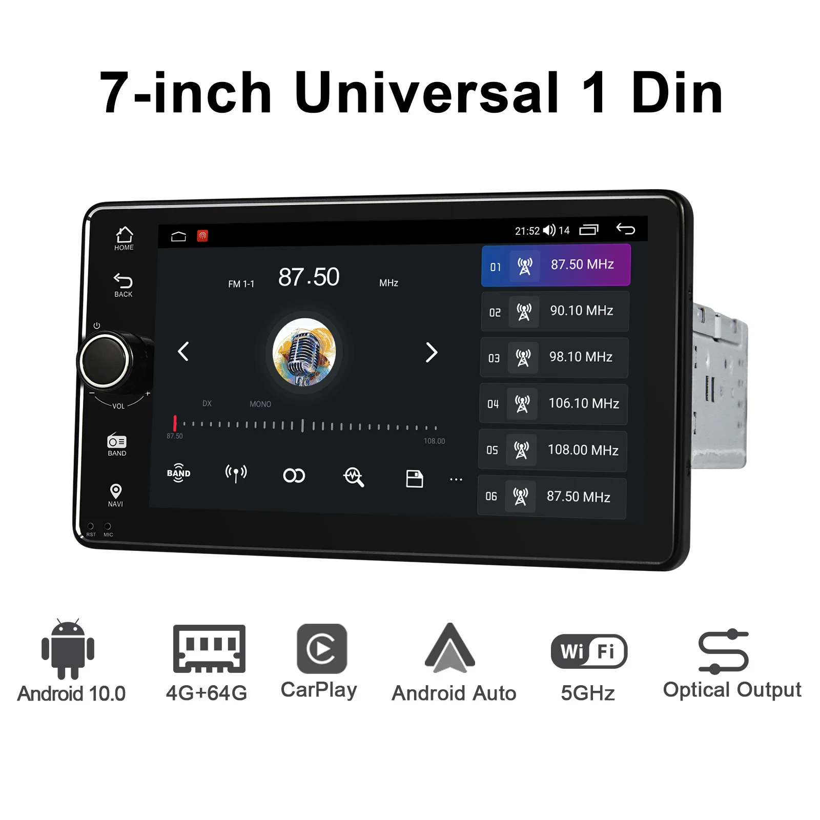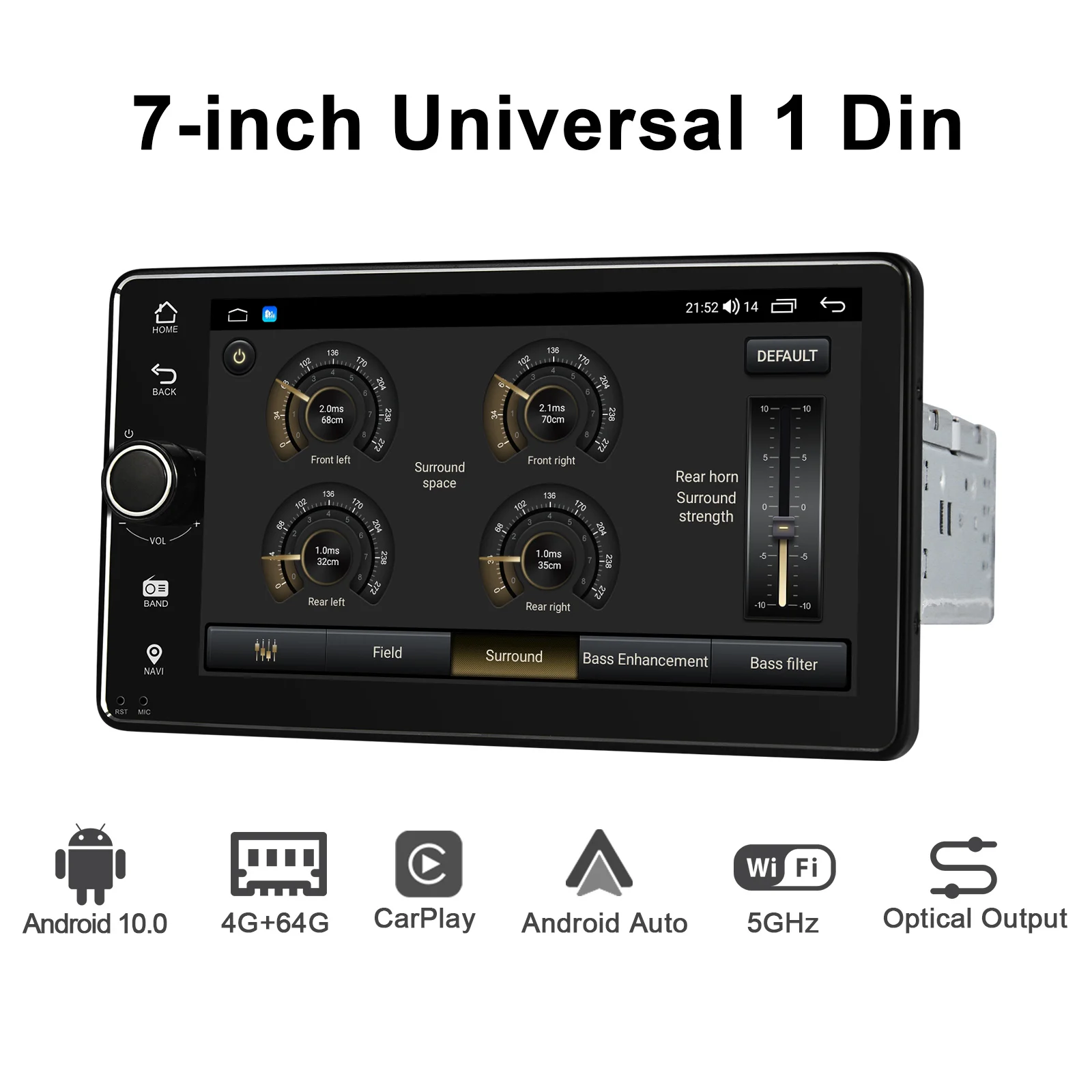 Автомобильный аудиоплеер JOYING, универсальный мультимедийный плеер с 7-дюймовым сенсорным экраном, FM радио, GPS, Android 10, RDS, DSP, Типоразмер 1 Din