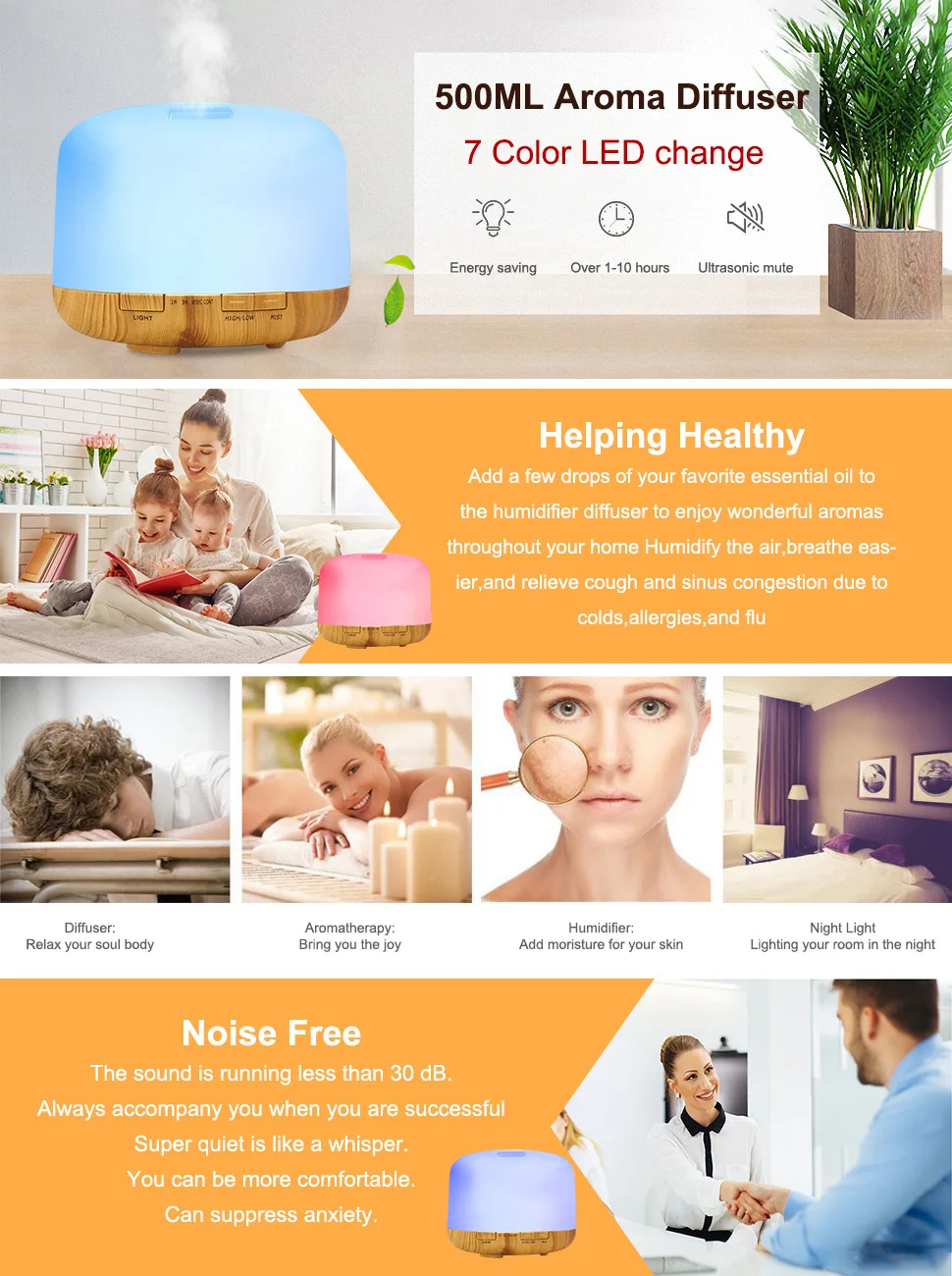 Увлажнитель воздуха Umidificador для ароматерапии, ультразвуковой распылитель эфирных масел, генератор холодного тумана, распылитель, увлажнитель воздуха светодиодный Ной лампой