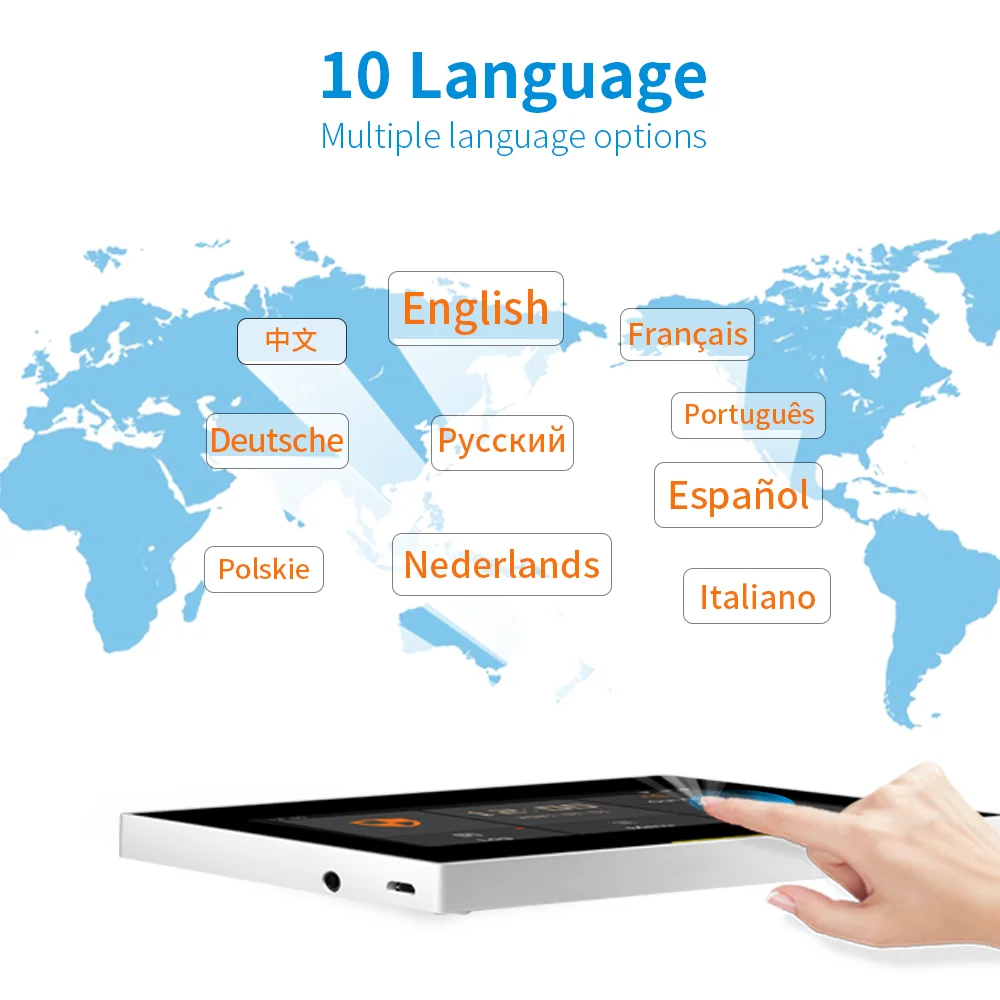 1. Поддержка WIFI и GSM карты2. Совместимость с приложением Tuya3. Совместимость с Google Home4. Совместимость с Alexa5. Совместимость с приложением smart life6. Полноцветный дисплей и полный сенсорный экран7. Поддержка дистанционного управления мобильным приложением8. Используя 4,3 дюймовый экран с полноцветным дисплеем9. Полный сенсорный экран
