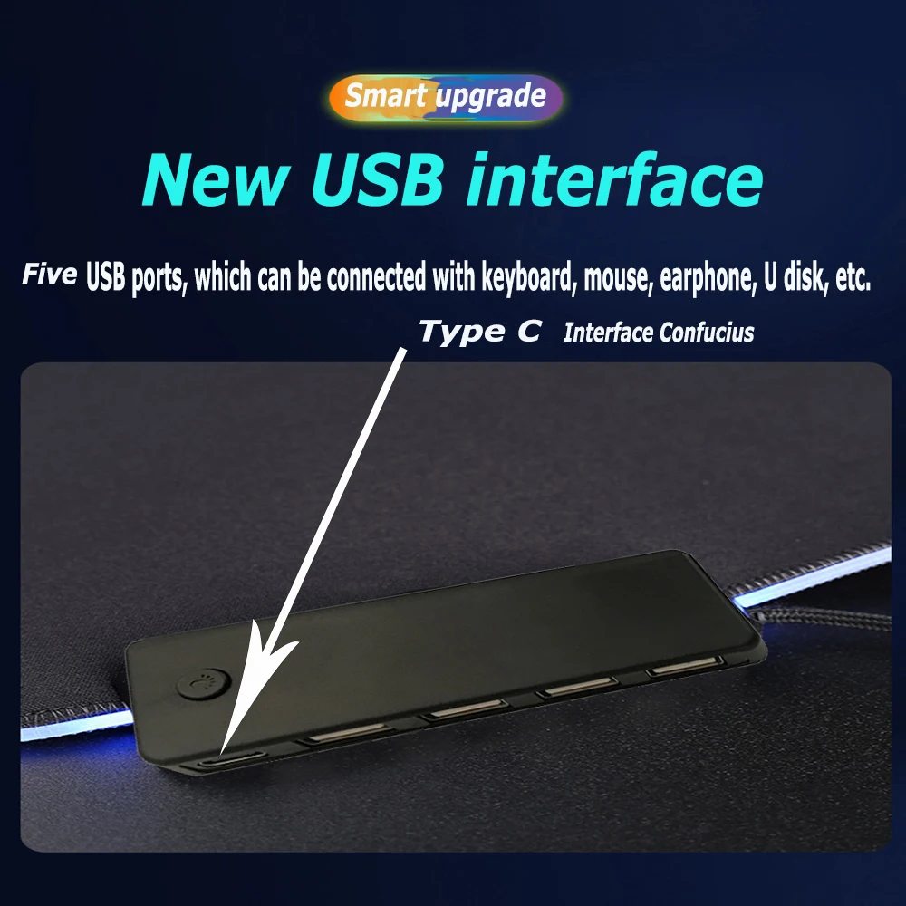 Игровой компьютерный коврик для мыши RGB, 4 порта, большой коврик д...