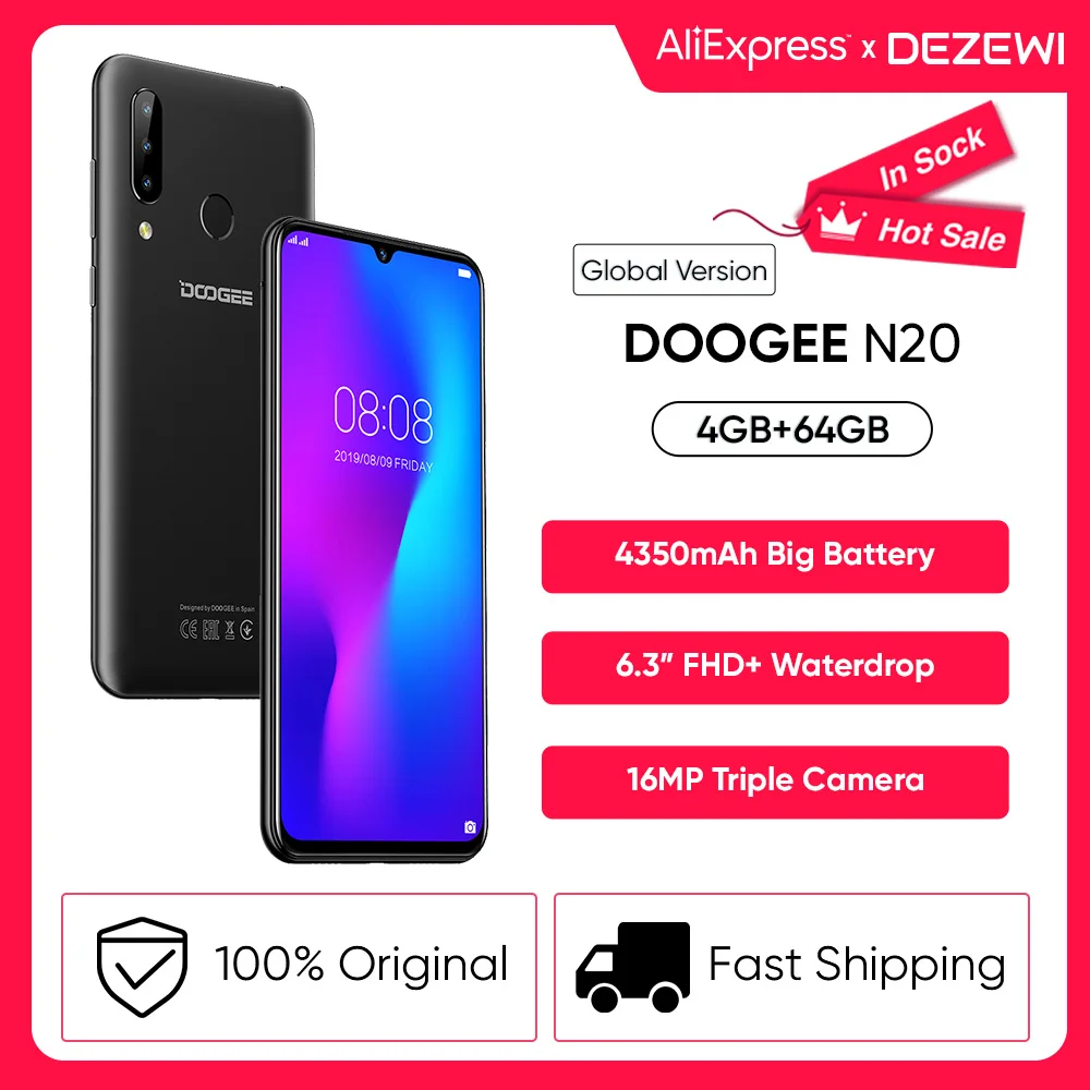 Смартфон DOOGEE N20, Helio P23, 6,3 дюйма, FHD +, тройная камера 16 МП, 4 + 64 ГБ, 4350 мА ч, 10 Вт, быстрая зарядка