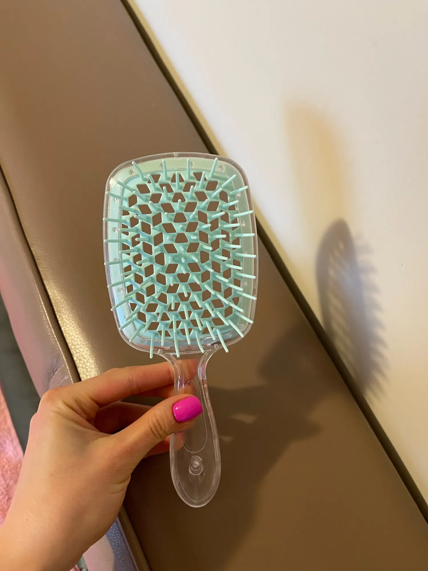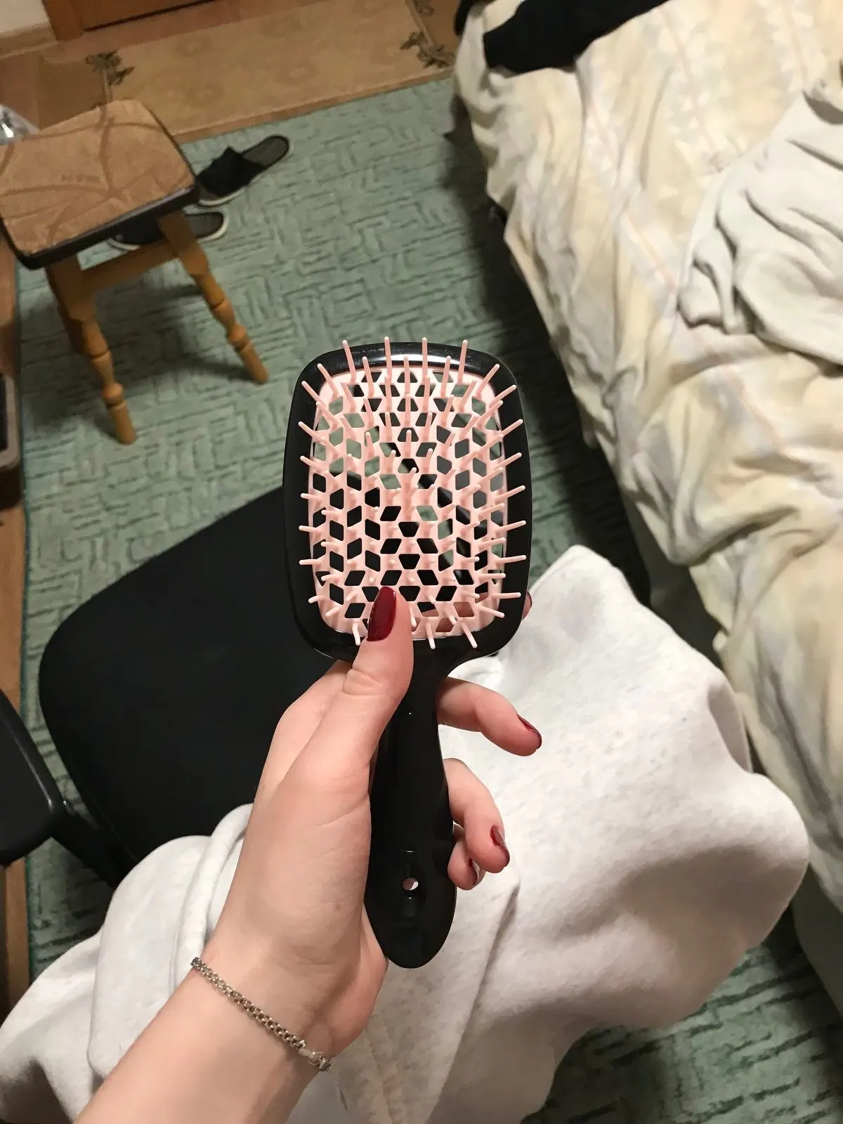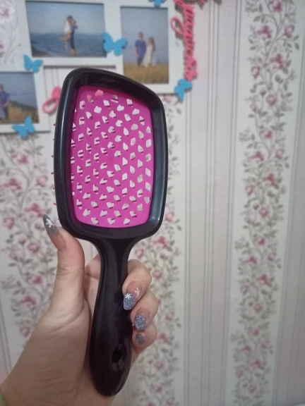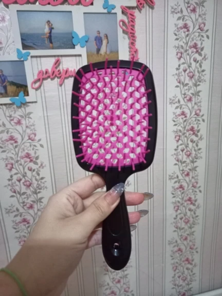 Шла посылка не долго, сначала думала, что фигня т.к. думала, что она будет силиконовая (зубцы из пластмассы). Пришла без повреждений, всё зубчики ровные. Расчёсывает она правда прекрасно (у дочки кудрявые волосики и после ночи они сбиваются в калатуны, которые могло исправить только мытьё головы с бальзамом и потом конская доза кондиционера, но она справилась на сухие волосы почти без проблем!!!!) Это конечно зачёт!!! минус в том, что электризует волосы она просто капец как( антистатик в помощь). В целом 8+/10.
