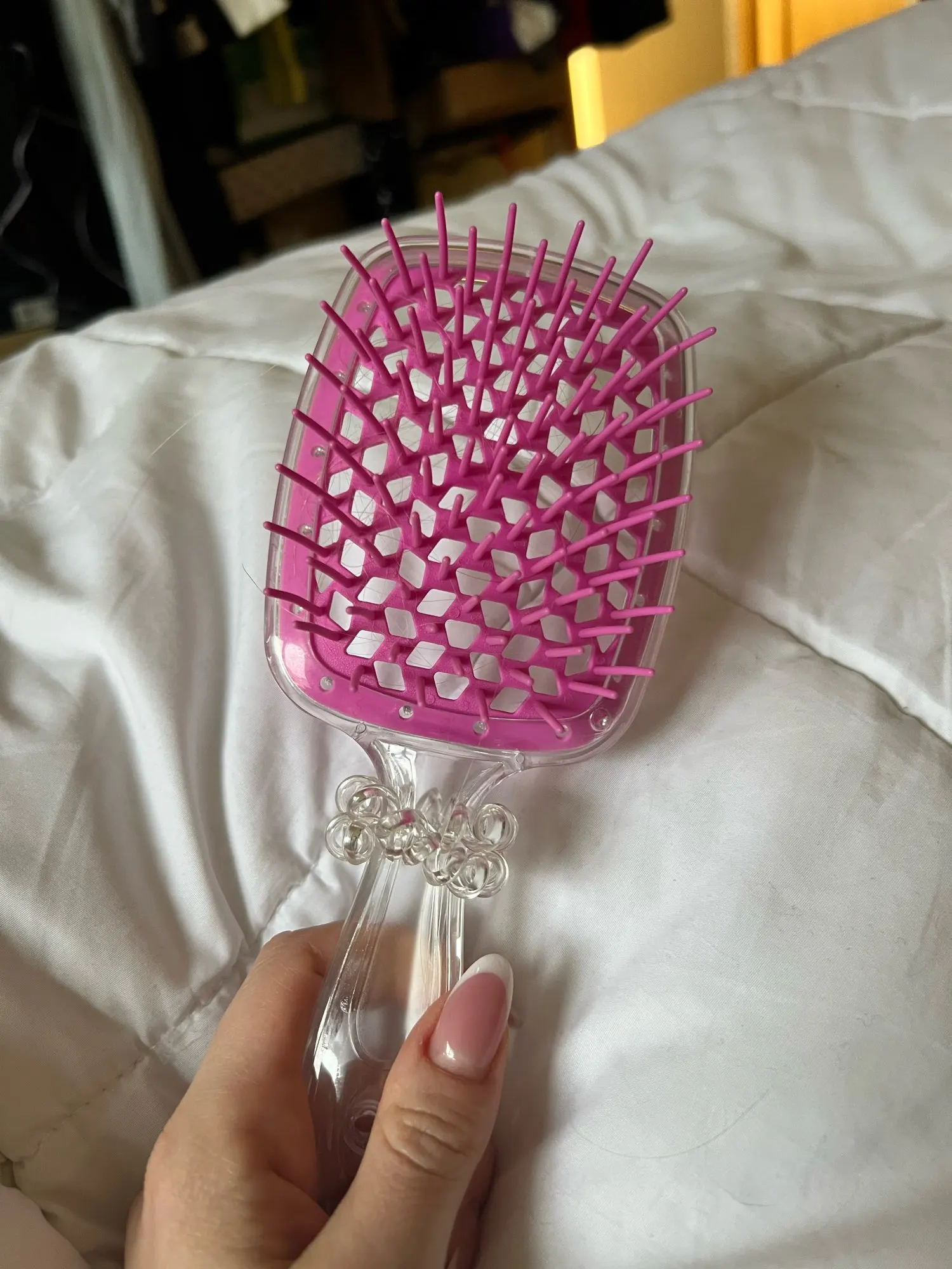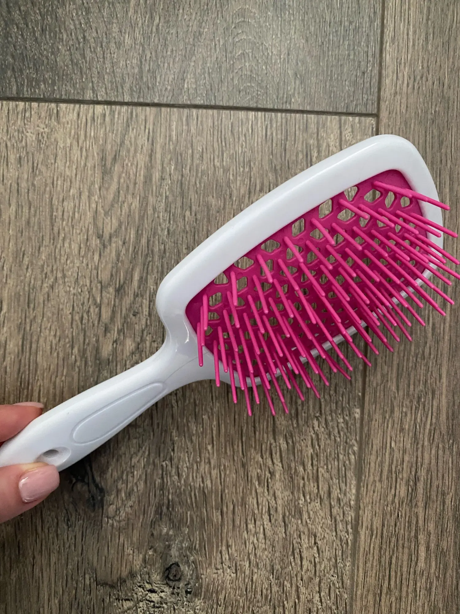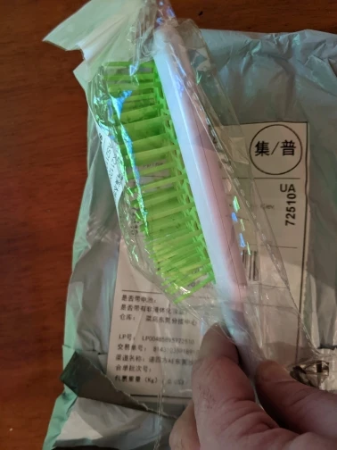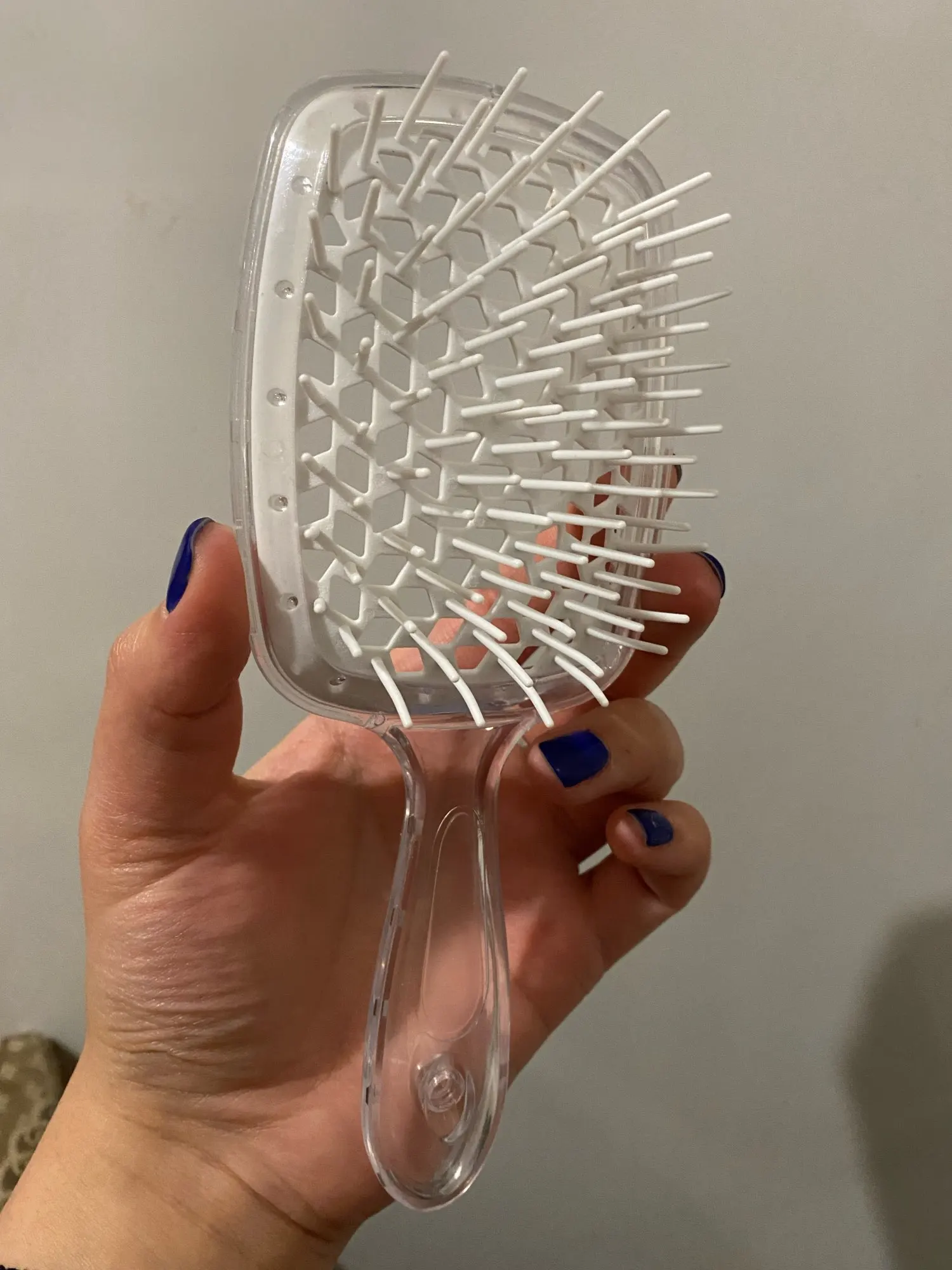 Шла посылка не долго, сначала думала, что фигня т.к. думала, что она будет силиконовая (зубцы из пластмассы). Пришла без повреждений, всё зубчики ровные. Расчёсывает она правда прекрасно (у дочки кудрявые волосики и после ночи они сбиваются в калатуны, которые могло исправить только мытьё головы с бальзамом и потом конская доза кондиционера, но она справилась на сухие волосы почти без проблем!!!!) Это конечно зачёт!!! минус в том, что электризует волосы она просто капец как( антистатик в помощь). В целом 8+/10.