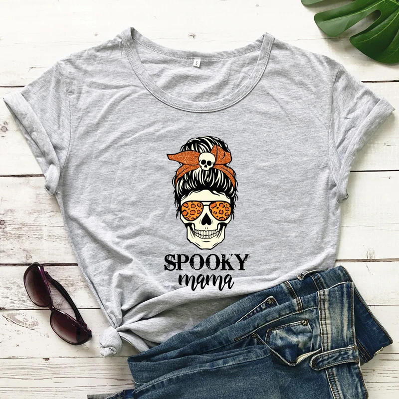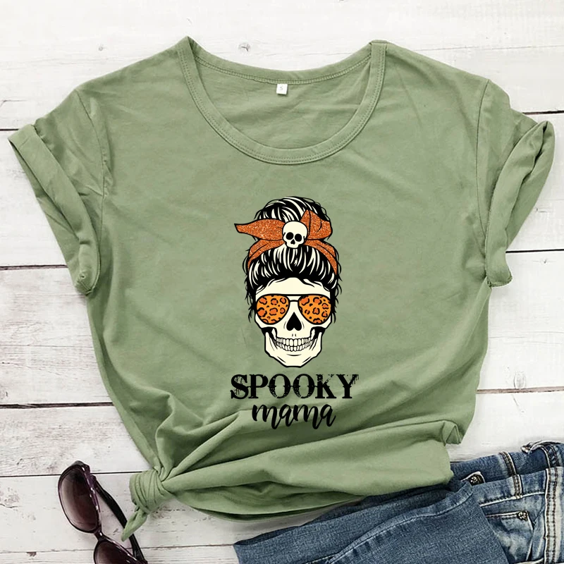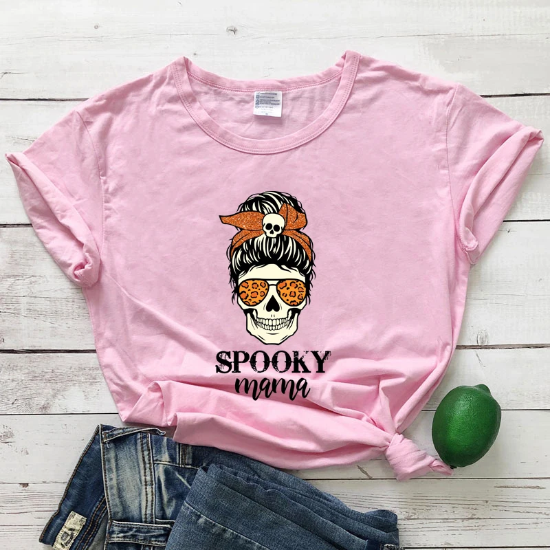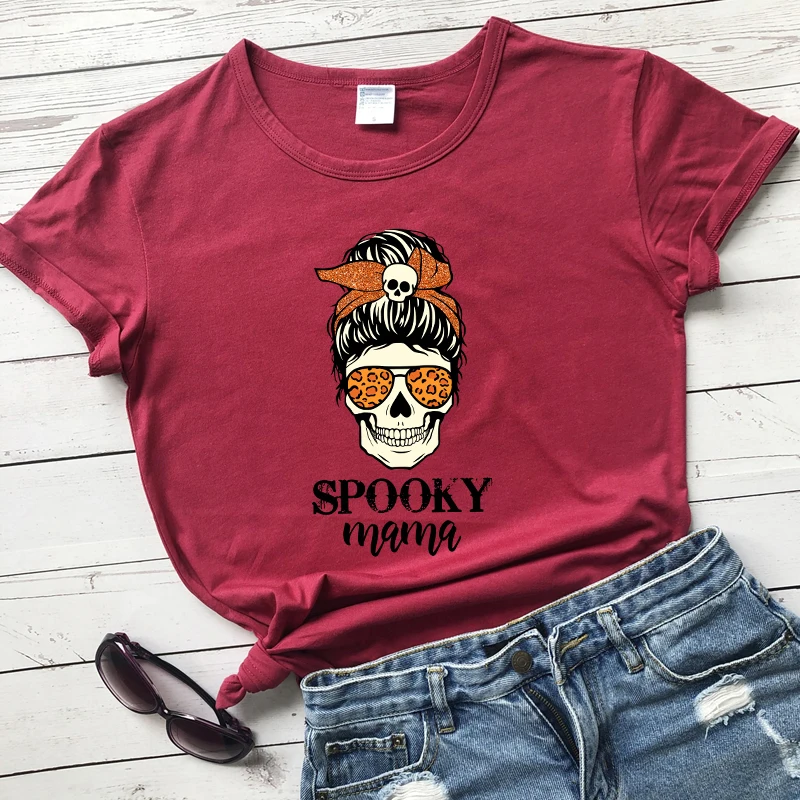 Цветная Женская футболка из 100% хлопка, забавная Женская футболка для вечеринки на Хэллоуин, топ с готическим черепом, футболка для мам
