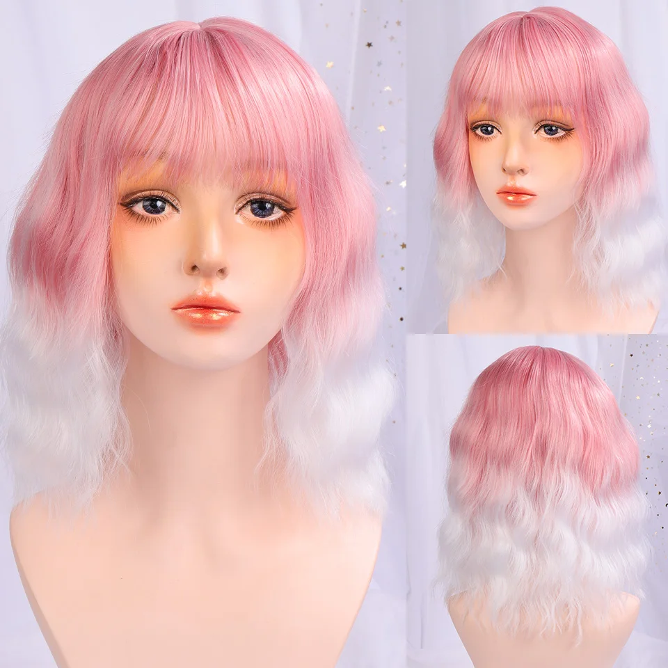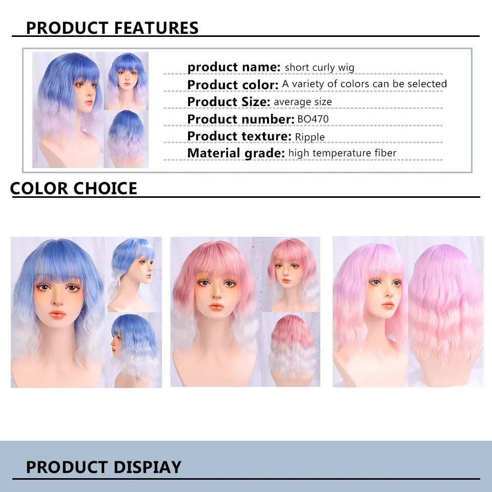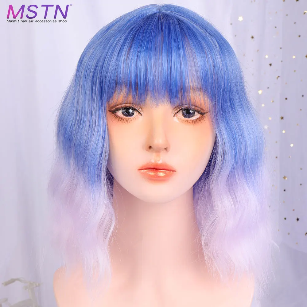 MSTN короткий волнистый боб парик с челкой для женщин синтетические Боб парики розовый фиолетовый косплей парик вечерние ежедневного использования