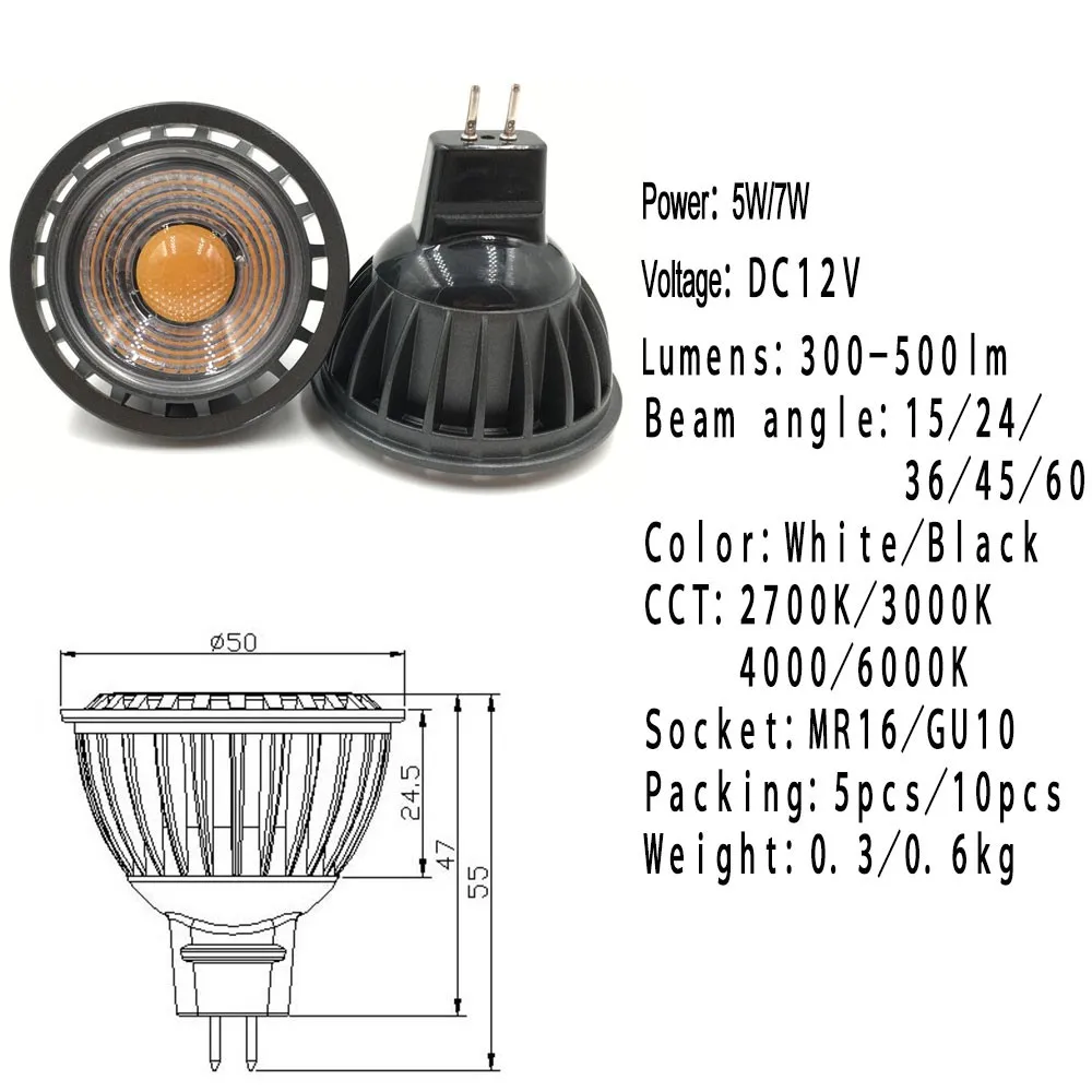 Светодиодная лампа HoneyFly MR16 GU5.3, 5 шт., 3 Вт, 5 Вт, 50 мм, 12 В постоянного тока, Миниатюрная лампа COB с яркостью 3000K, 6000K