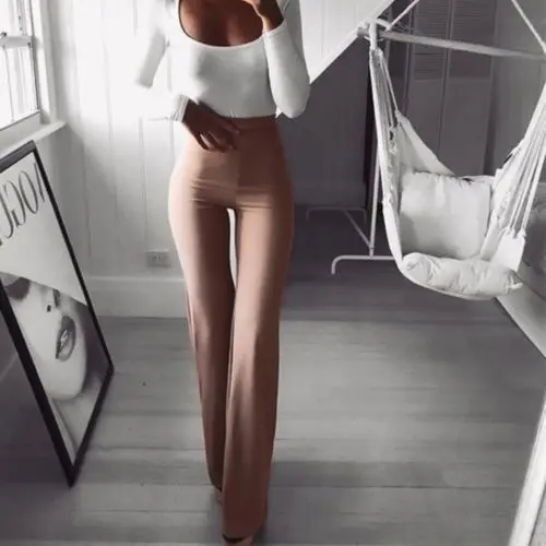 Женские брюки с высокой талией, пикантные широкие брюки-клеш, однот...