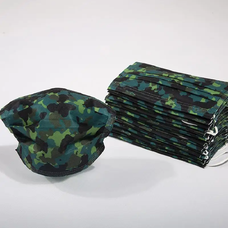 Маска для лица одноразовая для взрослых, Военная Зеленая камуфляжна...