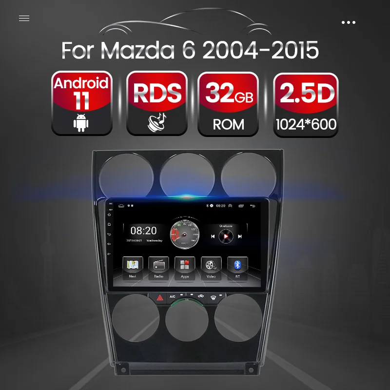 Автомагнитола YC 2 ГБ + 32 ГБ, Android 11, для Mazda 6 Mazda6 2002-...