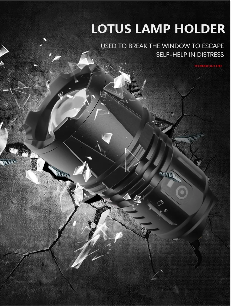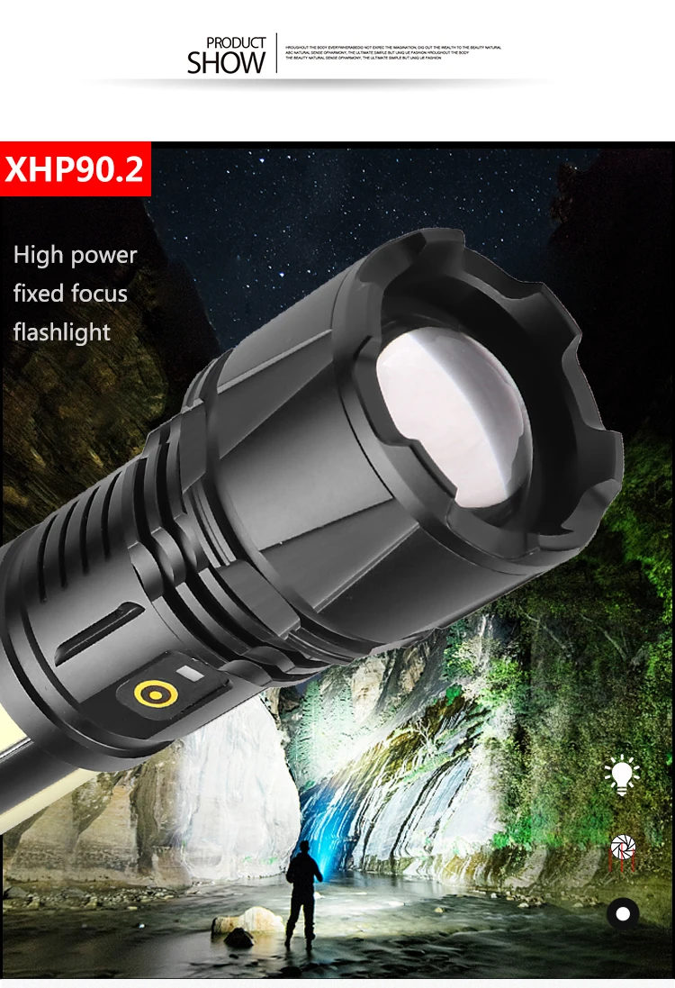Фонарик XHP90.2 с 4 ядрами, светодиодный перезаряжаемый внешний акк...