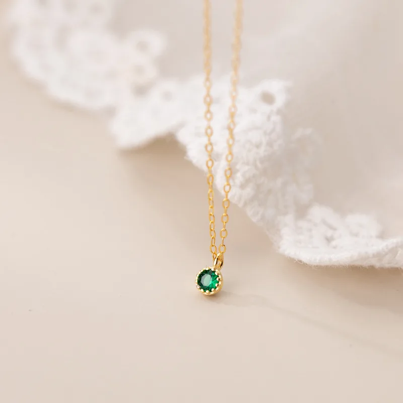 Ожерелье женское из серебра 925 пробы с зеленым Цирконом