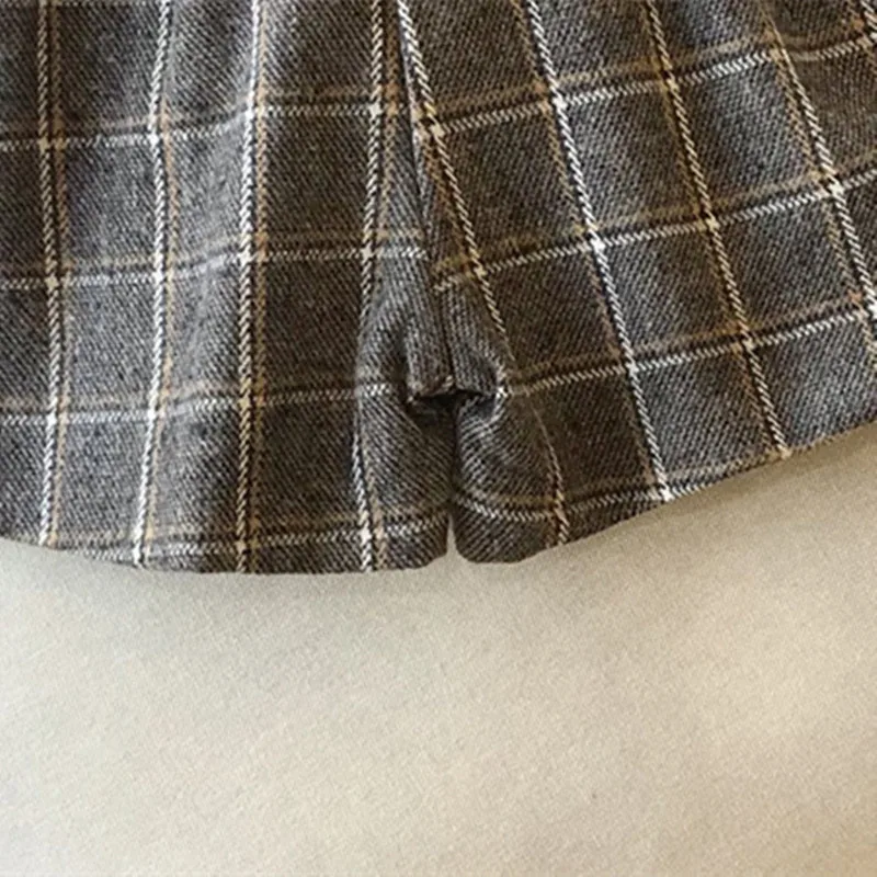 Клетчатые юбки-шорты для девочек, с эластичной талией, на пуговицах