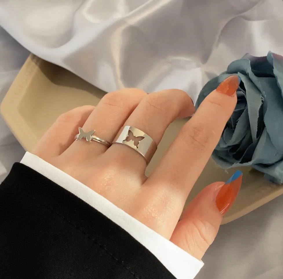 New DesignEN Trendy Gold Color Heart Butterfly Rings Set For Women Men
