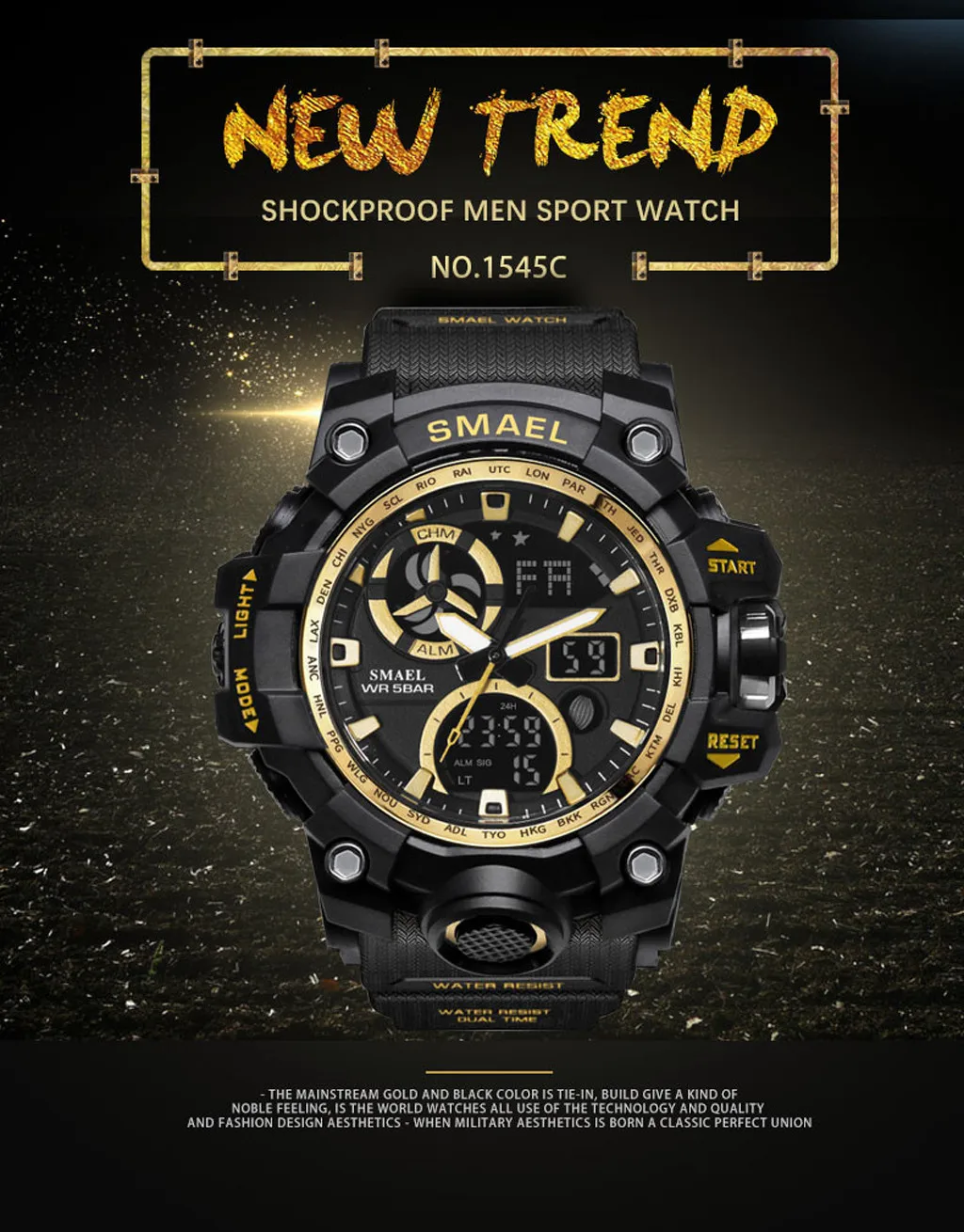 SMAEL мужские спортивные часы с двойным дисплеем, аналоговый цифровой светодиодный, электронные наручные часы