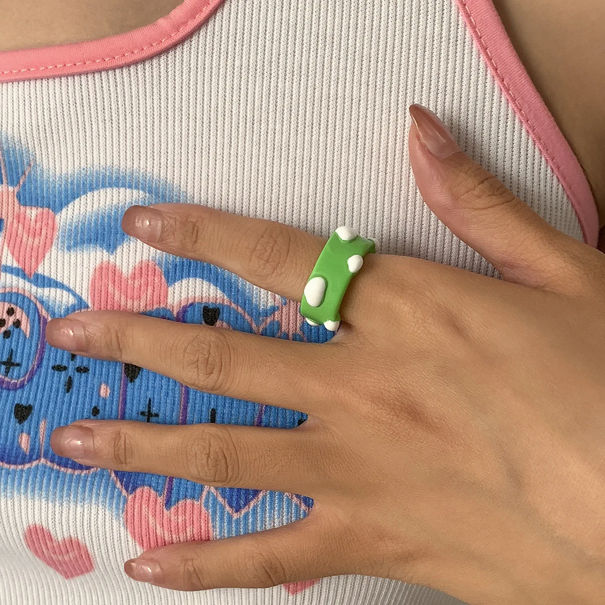 Кольца женские HUANZHI из полимерной смолы, с разноцветными лягушками, птицами и вишнями, 2021, кольцо с облаком
