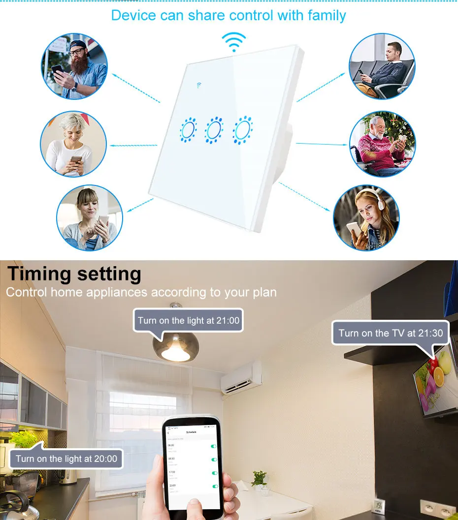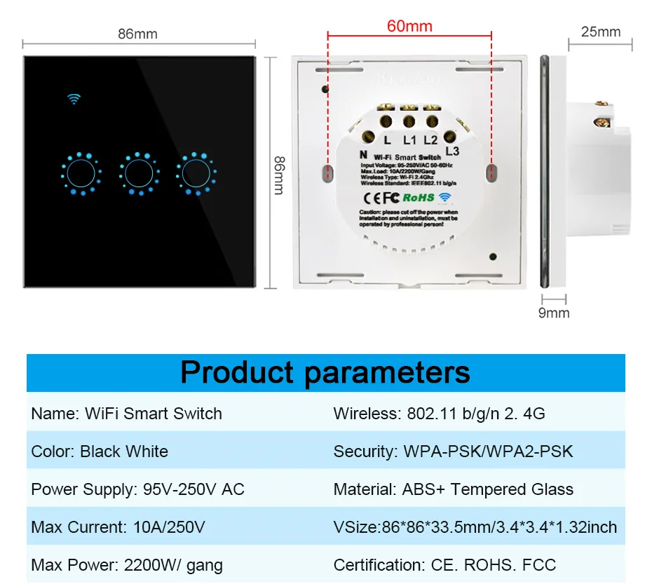 Этот умный переключатель Wi-Fi должен быть питан как напряжением, так и нейтральным проводом. Пожалуйста, отключите питание при установке и отключении, работайте профессиональным человеком.