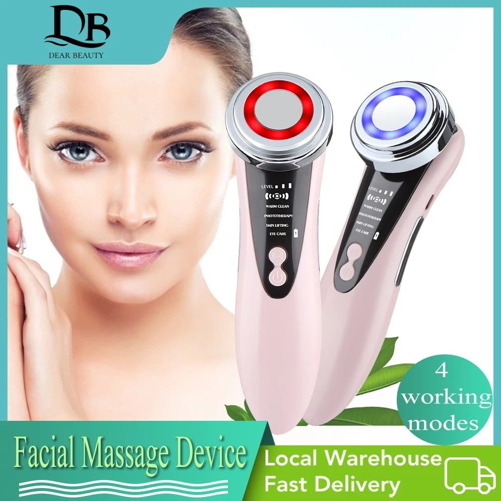 Многофункциональный массажер для ухода за кожей лица 5 в 1 Электрический массажный прибор для лица импортный цветной светильник косметический прибор для омоложения кожи лица теплая Очищающая антивозрастной подтягивающий инструмент для ухода за кожей лица