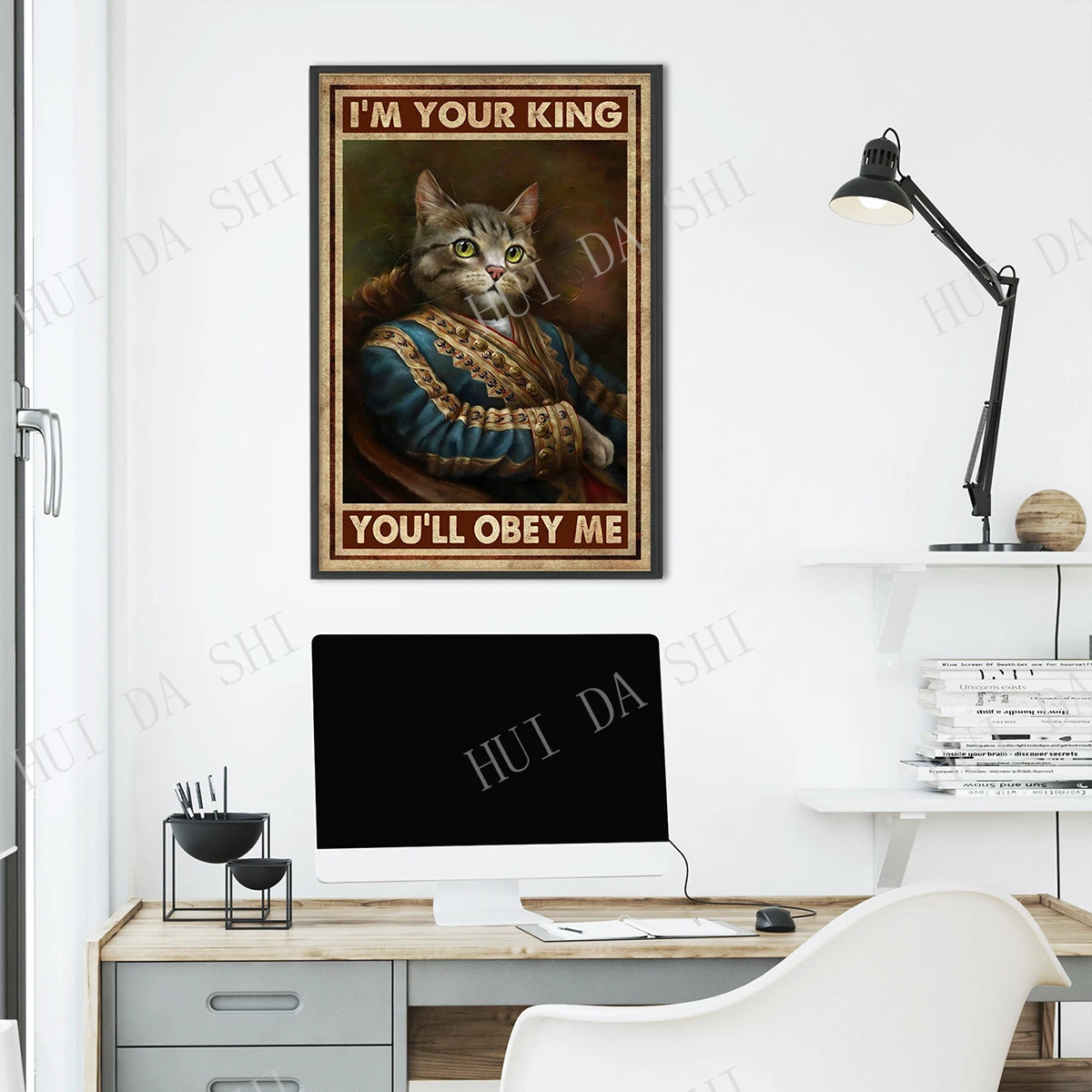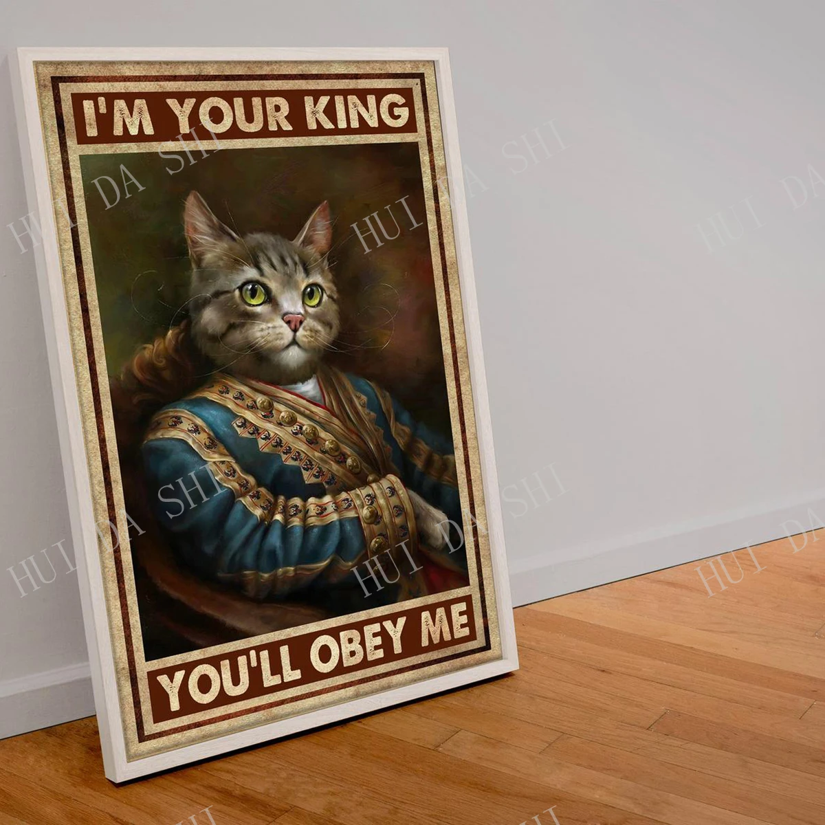 Я ваш король, вы подчинетесь мне, забавный постер для влюбленных королевских кошек, пушистый Оверлорд Художественная печать, холст для короля кота для домашнего декора