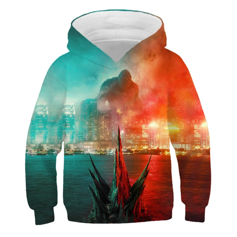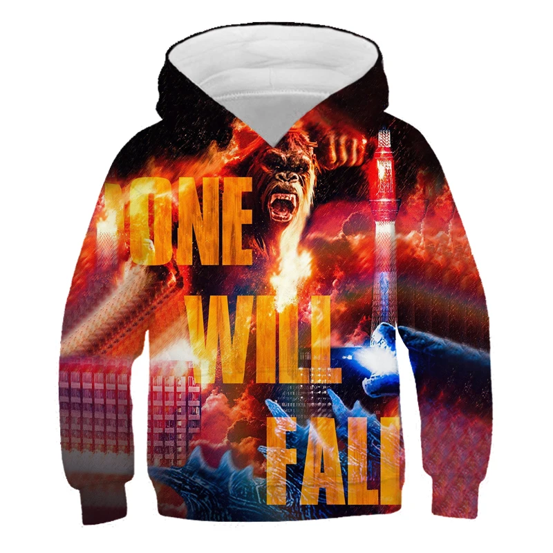 Одежда для мальчиков и девочек с 3D рисунком Gorilla vs Monster, Полиэстеровые свитшоты для мальчиков на осень, детская одежда, верхняя одежда для маленьких мальчиков, костюм