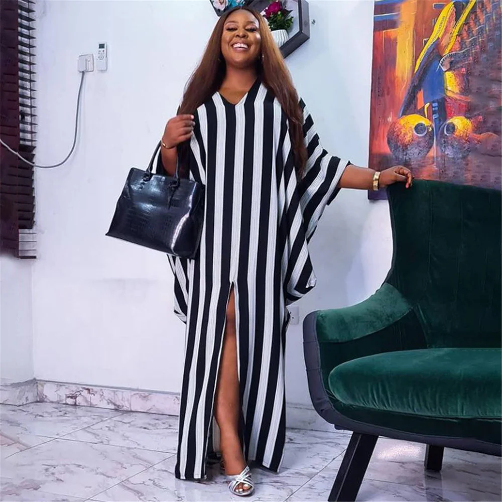 Женское платье с длинным рукавом, офисное платье макси в полоску, большие размеры, осенняя одежда, 2021